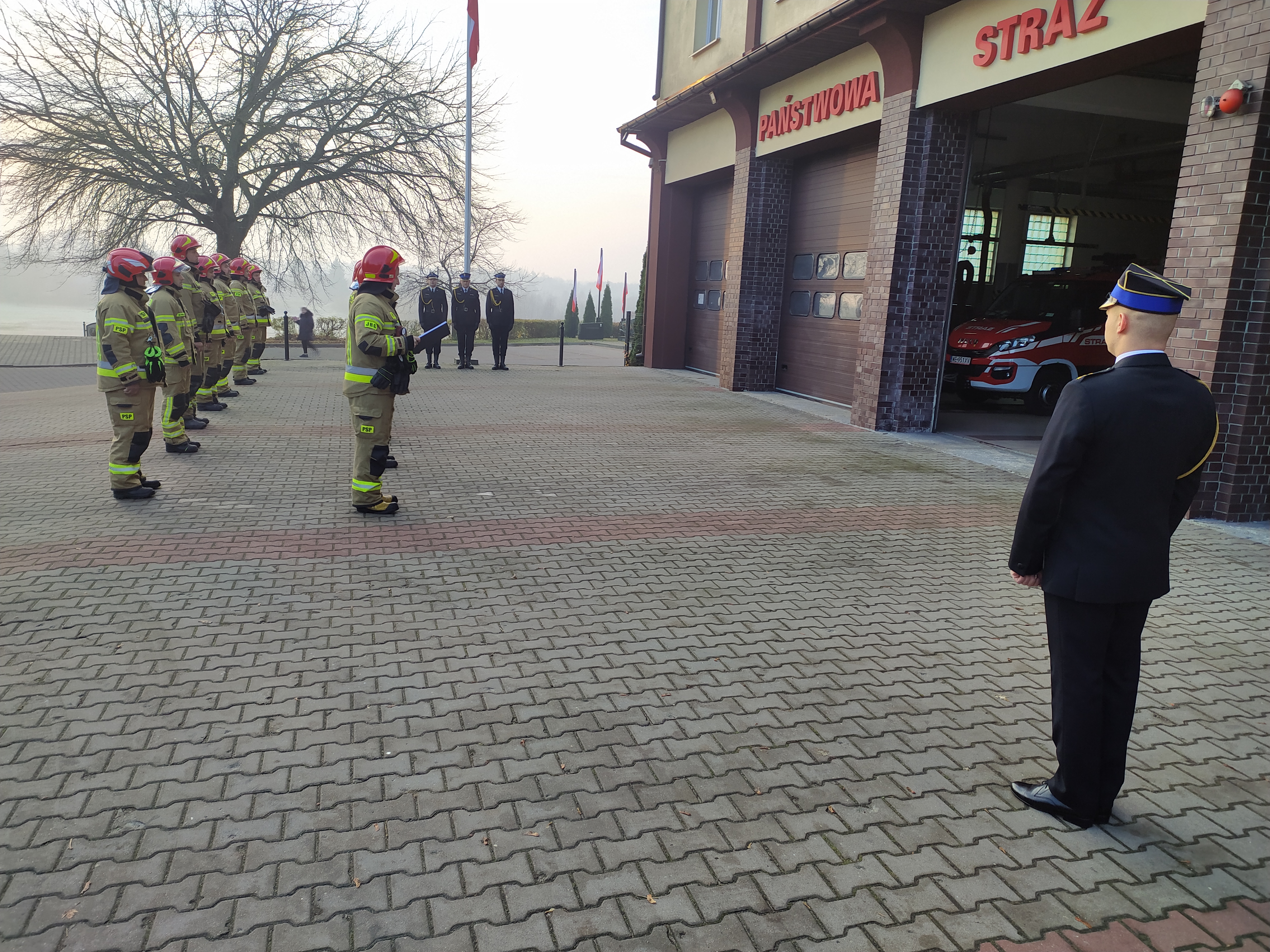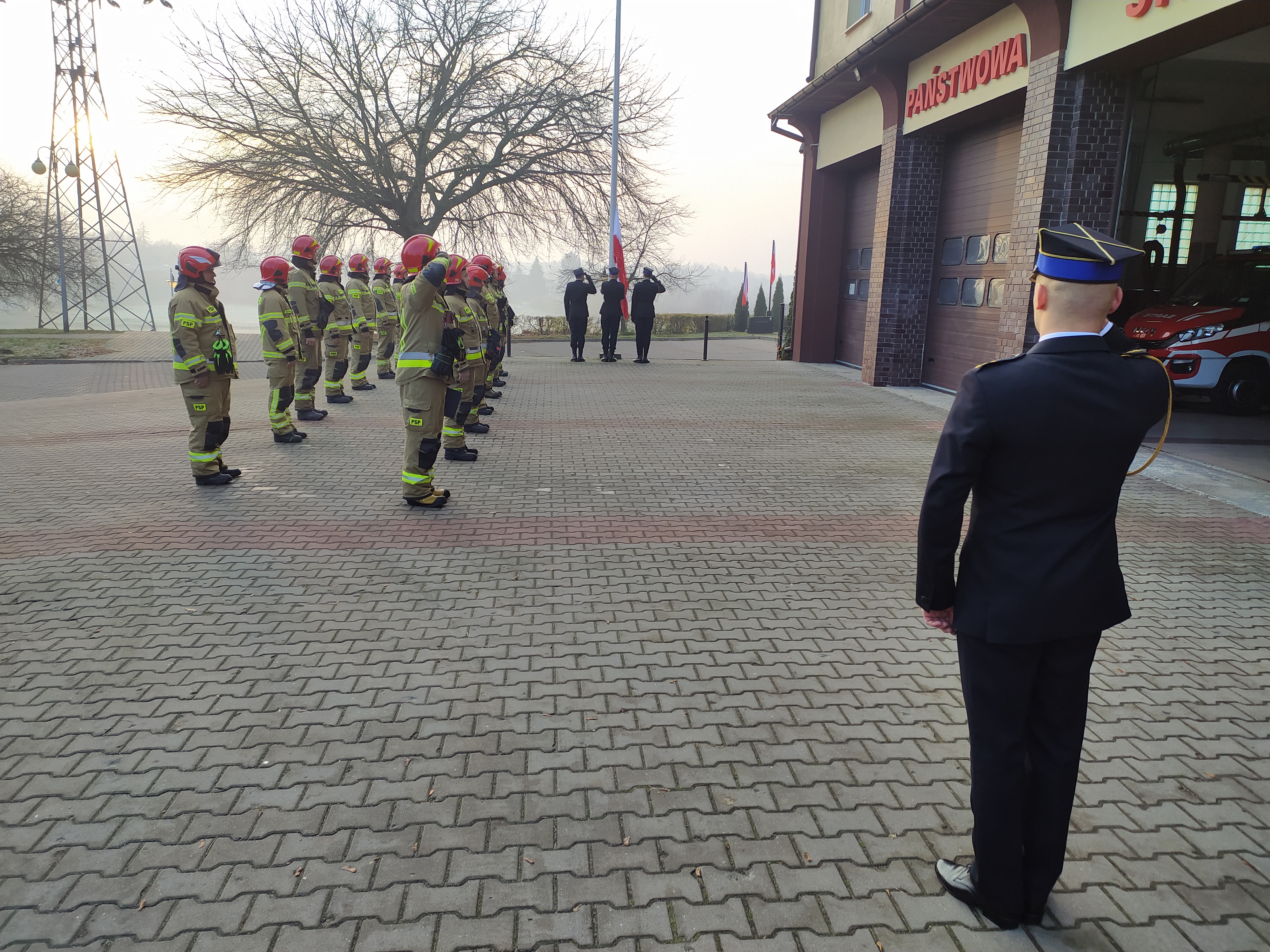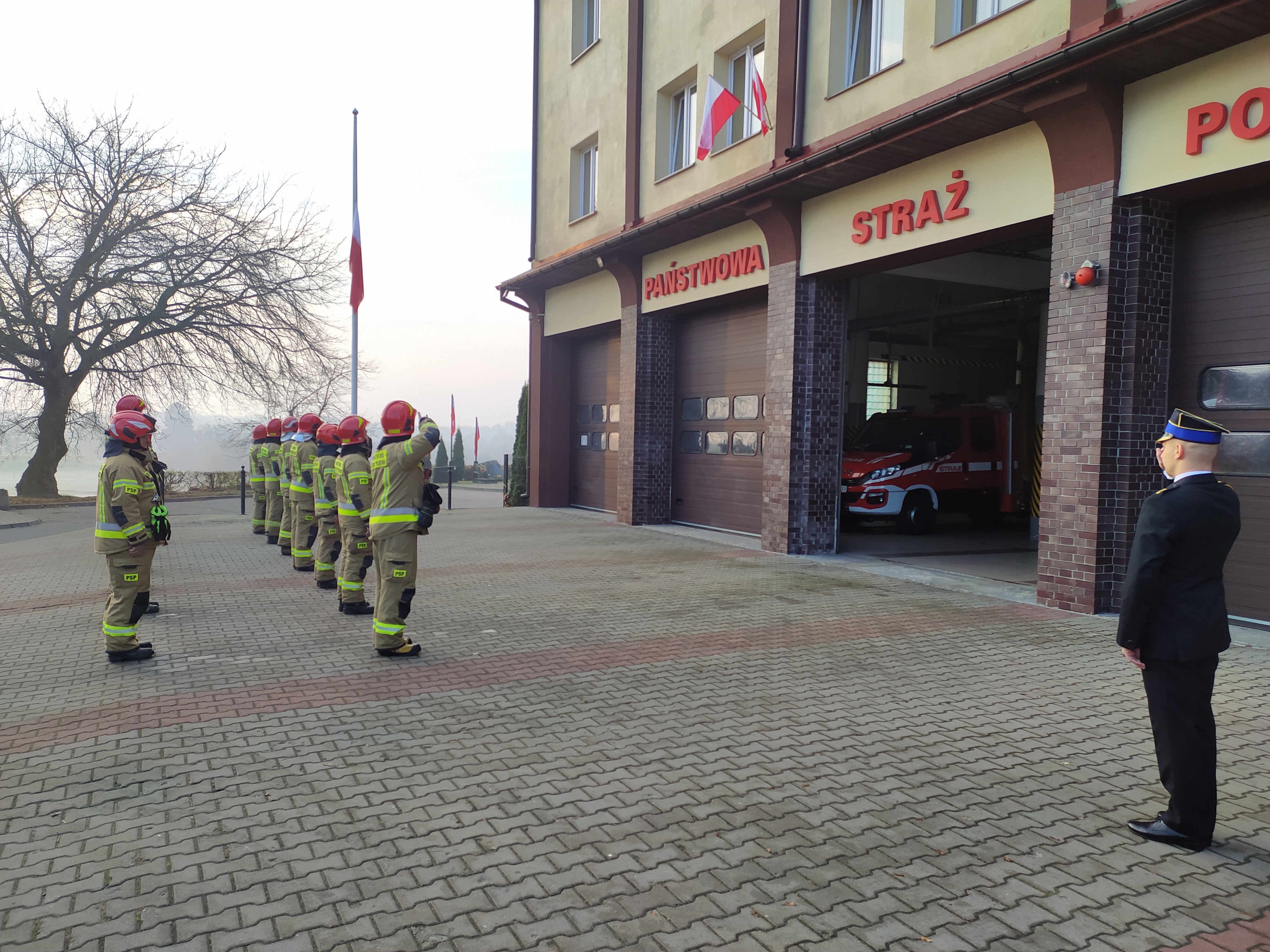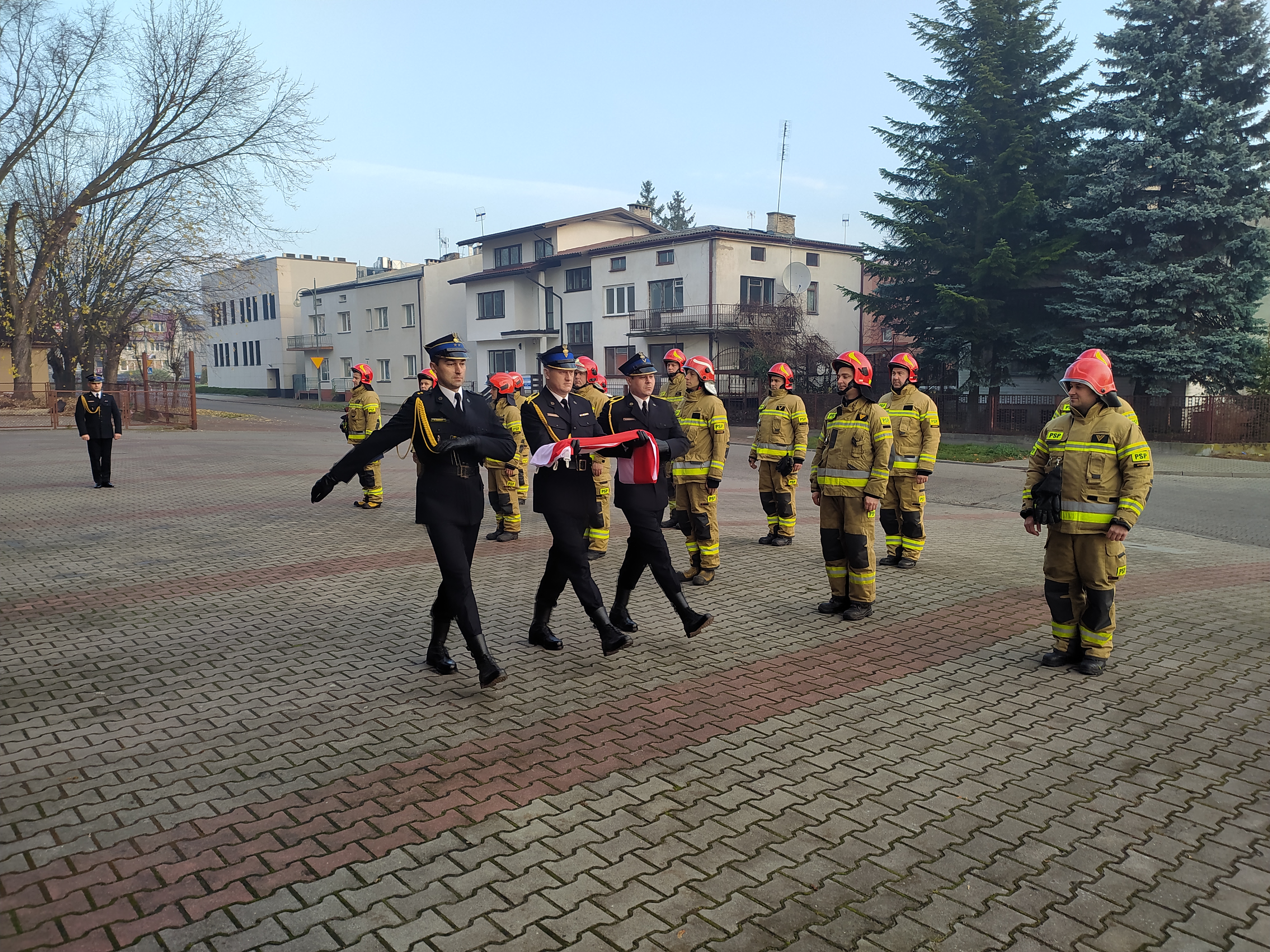 O godzinie 7:45 podczas zmiany służby w Jednostce Ratowniczo-Gaśniczej nastąpiło uroczyste podniesienie flagi państwowej. Strażacy uczcili w ten sposób Narodowe Święto Niepodległości, oddając hołd wszystkim Rodakom, którzy oddali życie w walce o wolność i niepodległość naszej Ojczyzny.