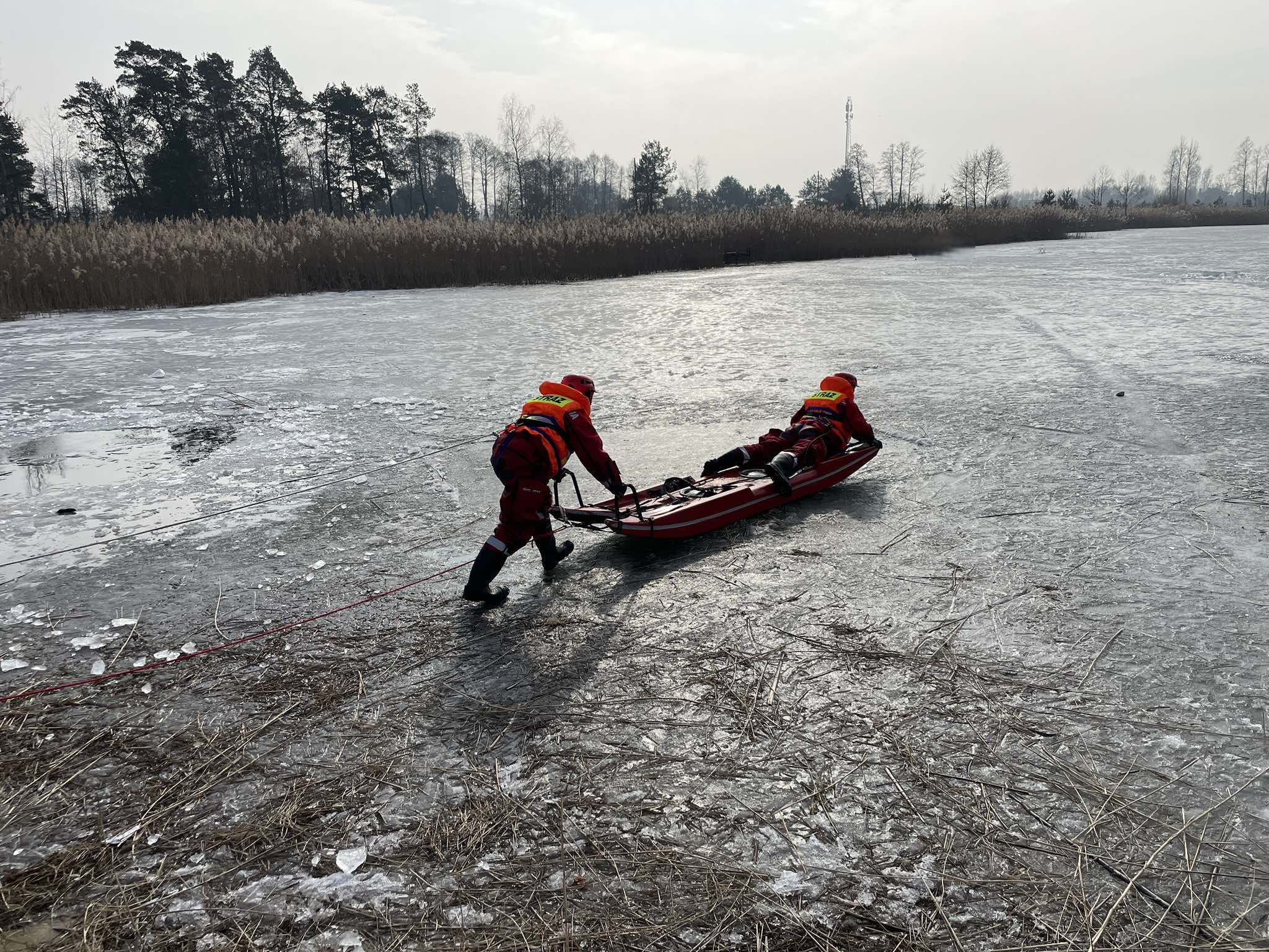 Strażacy trenowali m.in. wykorzystanie sań lodowych, bezpieczne podejście do poszkodowanego, ewakuację z lodu oraz udzielanie pierwszej pomocy.