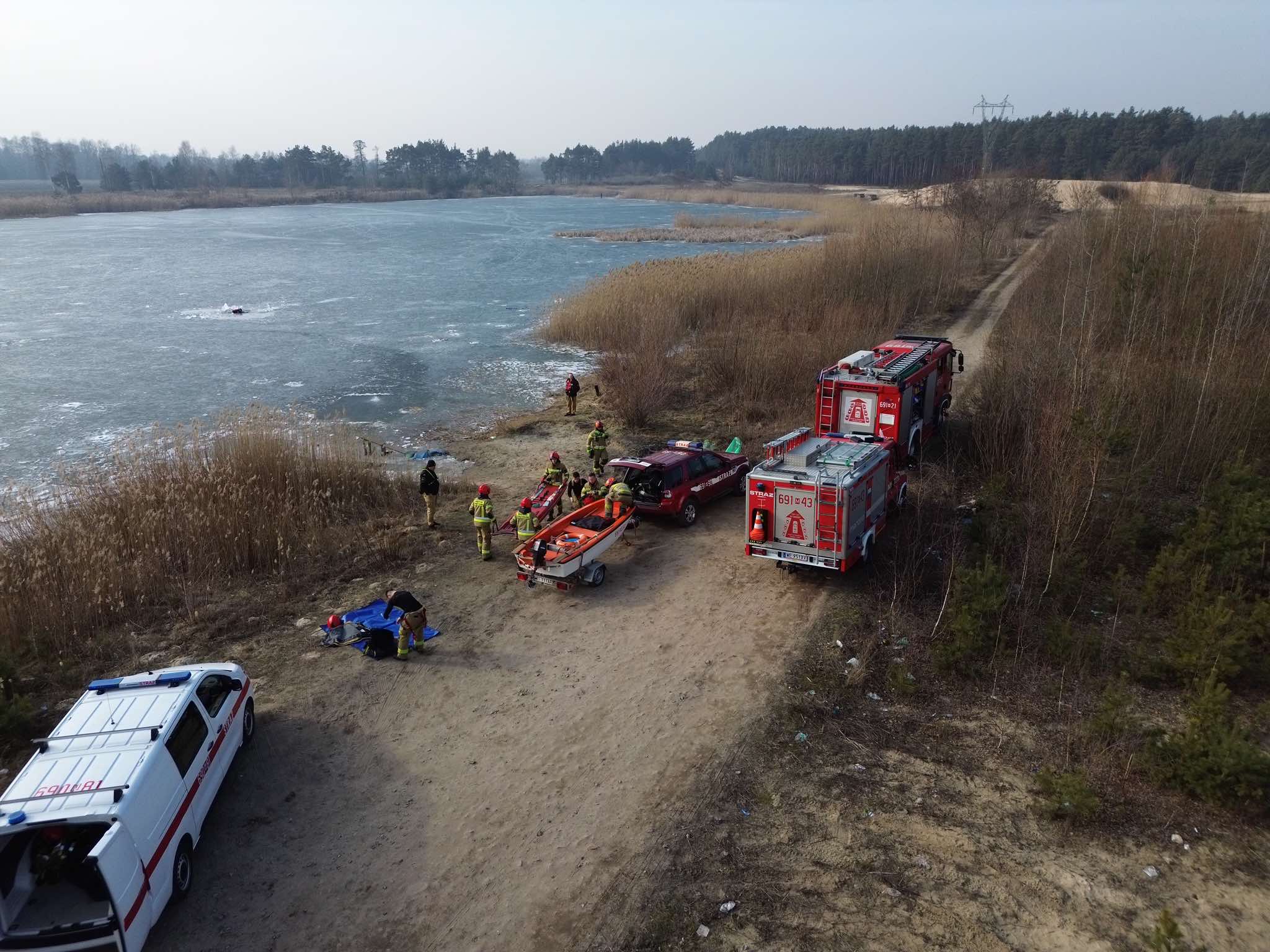 Ćwiczenia z ratownictwa lodowego na zamarzniętym akwenie wodnym