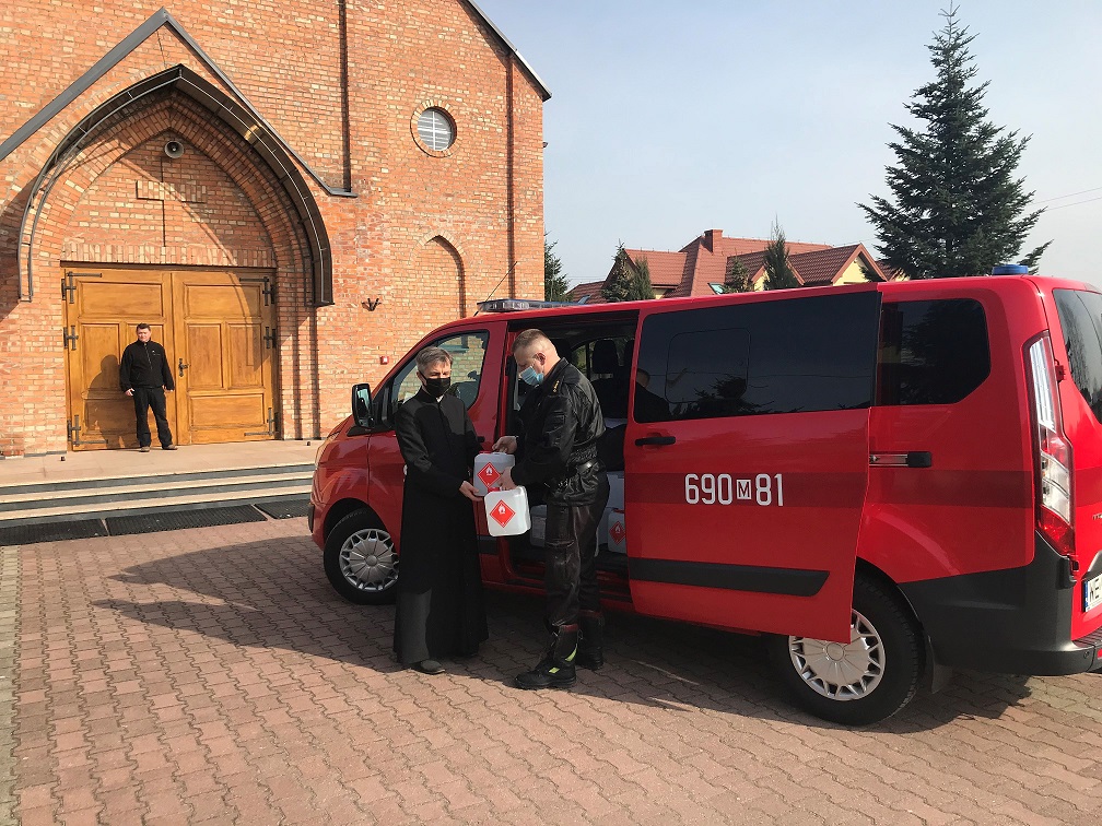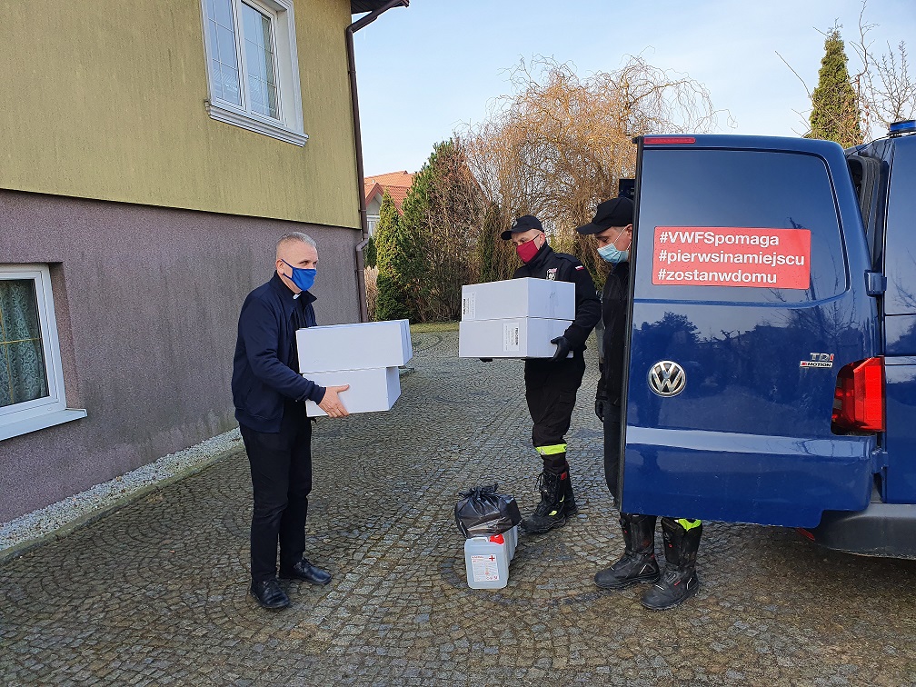 W dniach 31 marca -1 kwietnia strażacy z Komendy Powiatowej PSP w Wyszkowie oraz druhowie OSP Trzcianka, OSP Kamieńczyk oraz OSP Zabrodzie dostarczyli maseczki ochronne i płyny do dezynfekcji do parafii na terenie powiatu wyszkowskiego. Akcja rozwożenia maseczek koordynowana jest przez Wojewodę Mazowieckiego, w ramach pomocy rządowej pochodzącej z Rządowej Agencji Rezerw Strategicznych. Na terenie powiatu rozdysponowano środki ochrony indywidualnej w ilości 66 000 sztuk maseczek oraz 400 l płynu do dezynfekcji do 20 parafii.