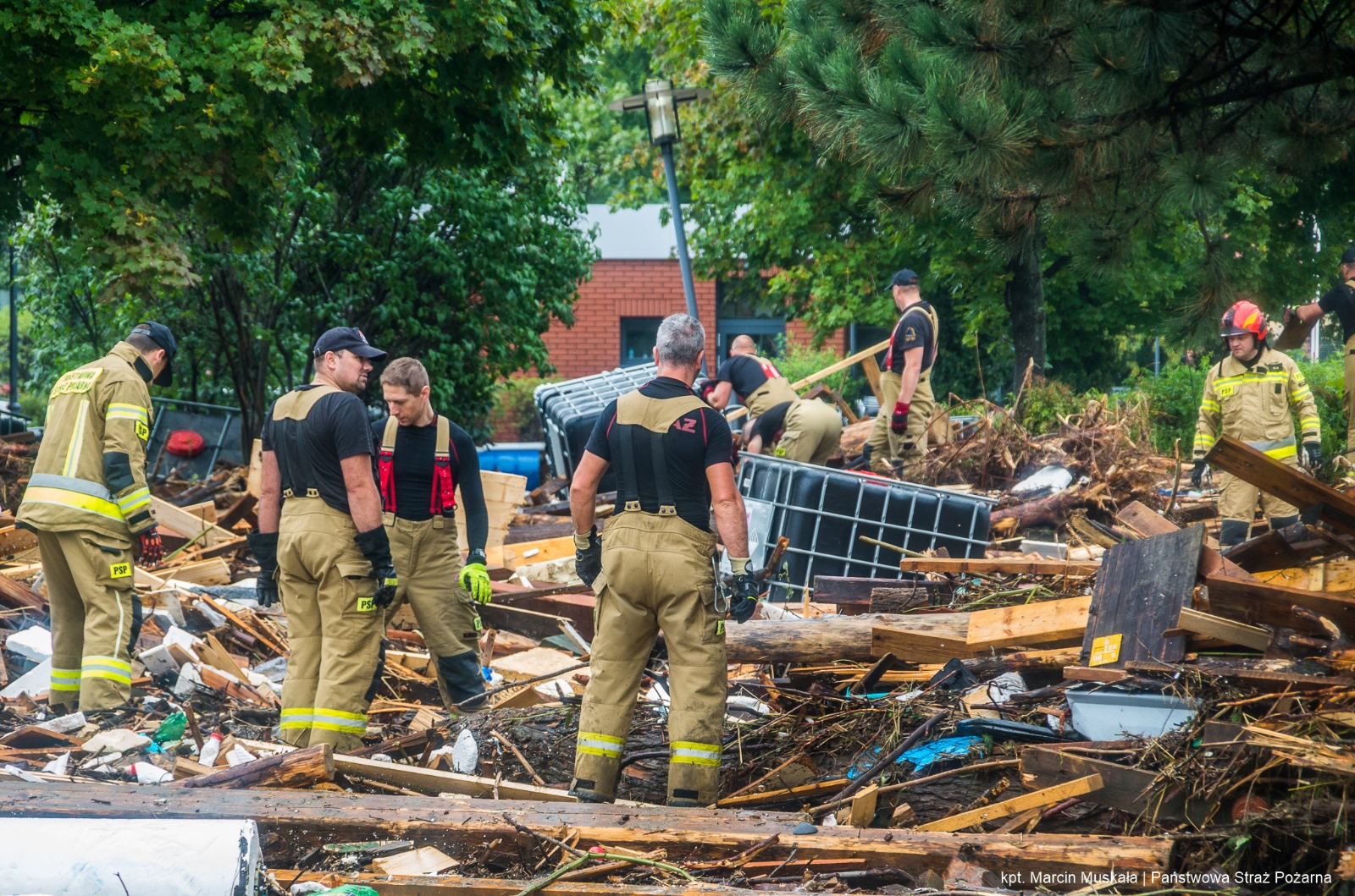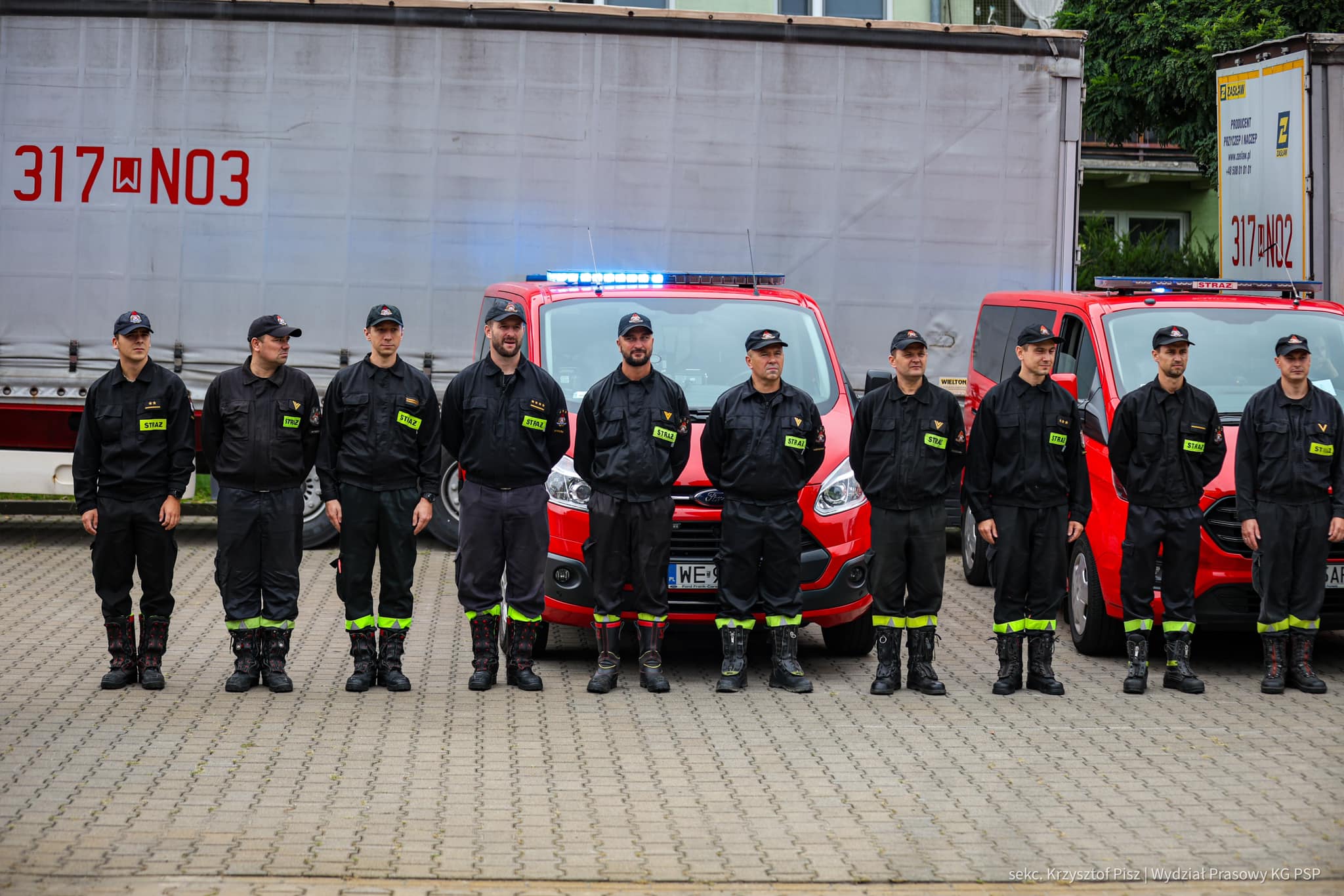 Pięciu naszych funkcjonariuszy wraz z niezbędnym wyposażeniem (m. in. kamizelki ratunkowe, wodery, łopaty) udało się do punktu zbiórki w Warszawie, skąd po odprawie pojechali razem z innymi strażakami z woj. mazowieckiego do miejscowości Głuchołazy (łącznie 30 strażaków, 9 pojazdów).