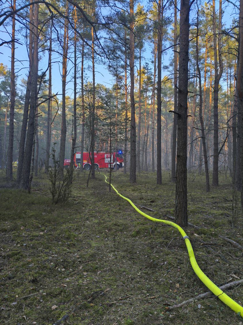 Po przybyciu na miejsce zdarzenia i przeprowadzeniu rozpoznania ustalono, że pożar obejmuje suchą trawę na nieużytkowanych powierzchniach rolniczych i przenosi się na znajdujący się w pobliżu las.