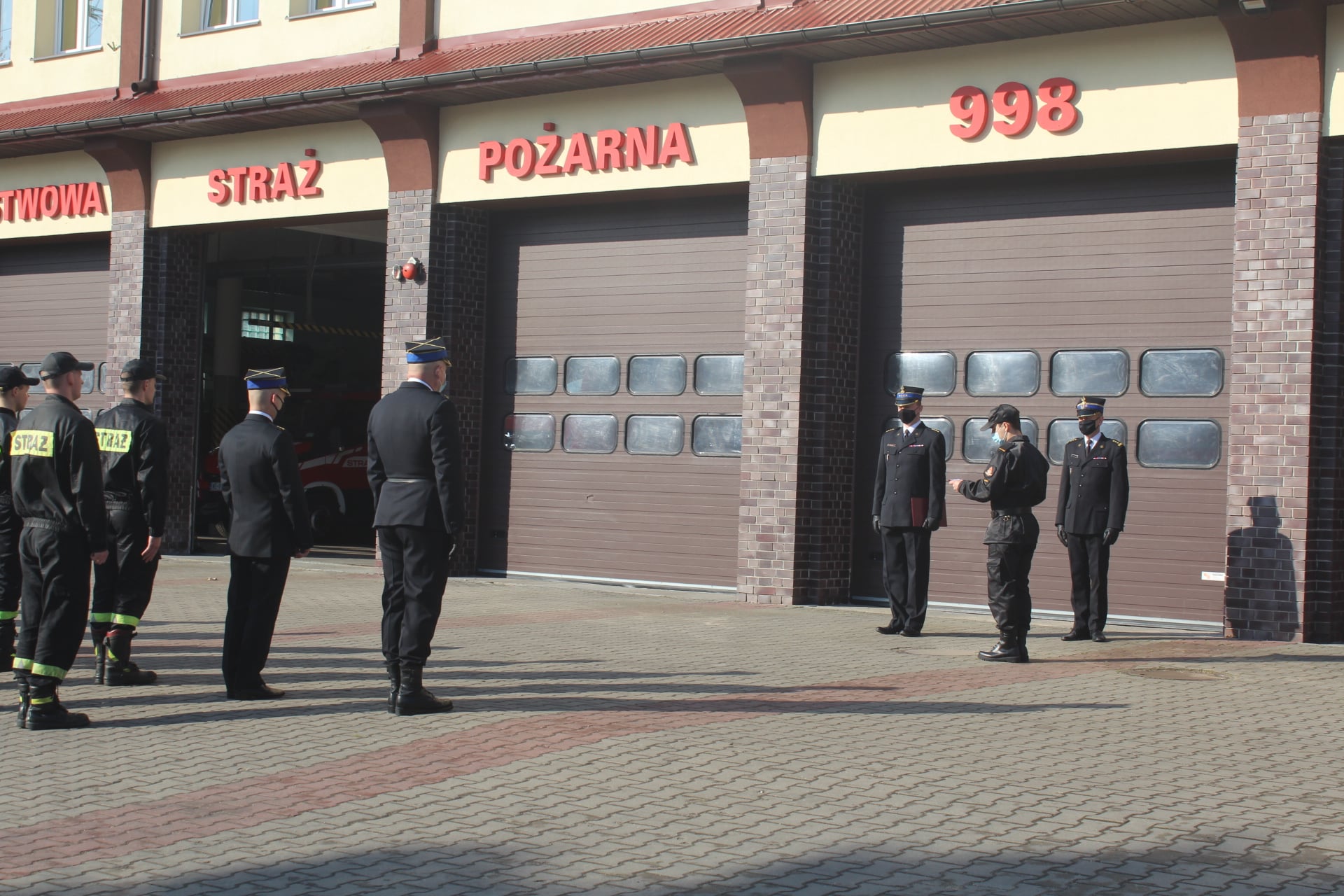 Uroczystego wręczenia aktu mianowania dokonał podczas uroczystej zmiany słuzby st. kpt. Rafał Balcer Komendant Powiatowy Państwowej Straży Pożarnej w Wyszkowie, w obecności swojego Zastępcy st. bryg. Sławomira Pietrzaka oraz zmian służbowych JRG.