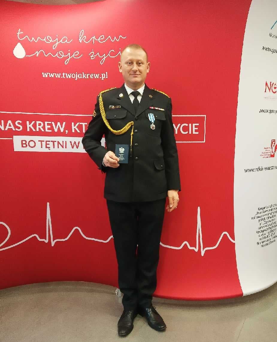 W zaszczytnym gronie osób, które tym razem zostały uhonorowane odznaką, znalazł się funkcjonariusz Komendy Powiatowej PSP w Wyszkowie - Dariusz Chrostowski.