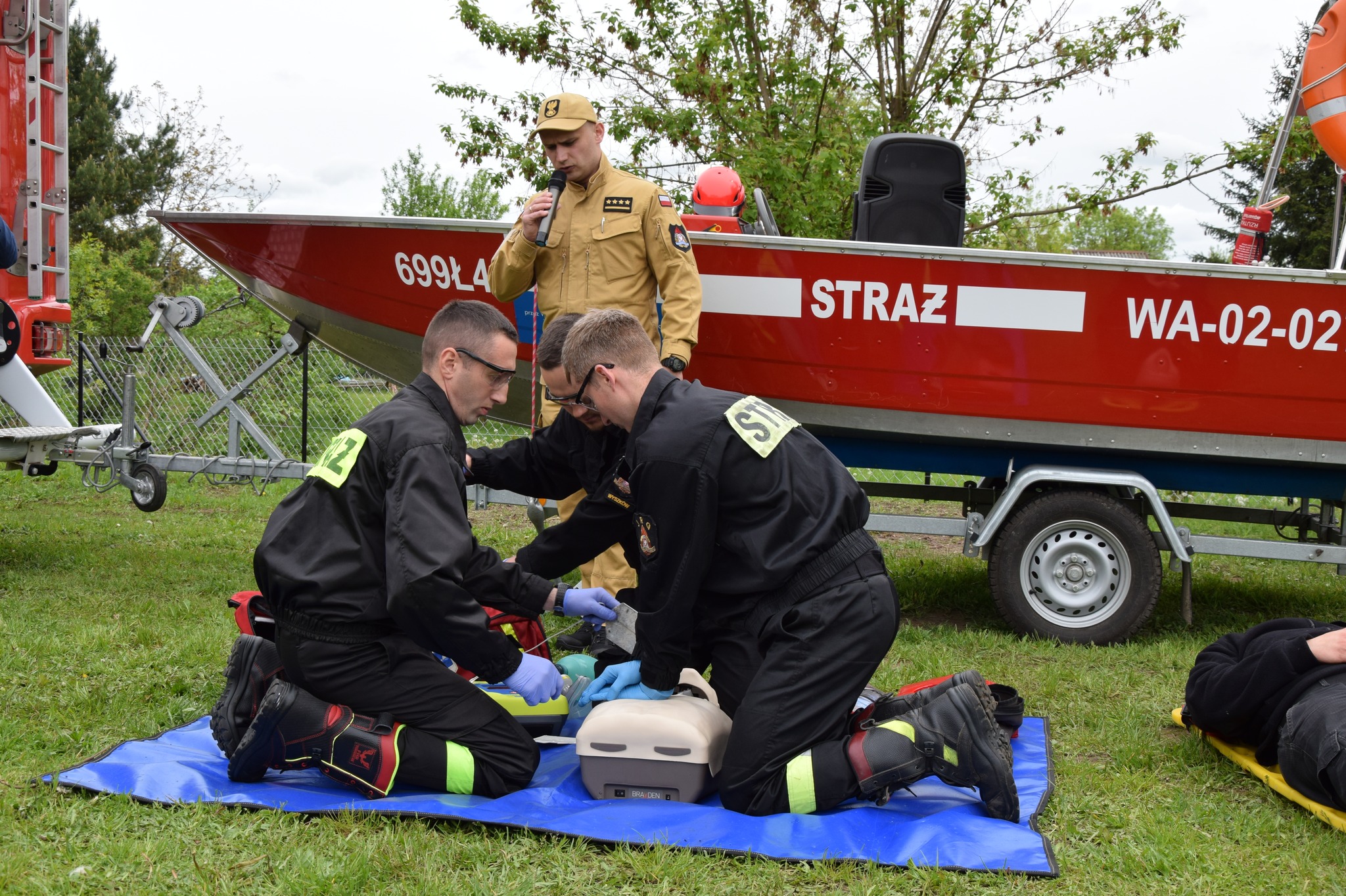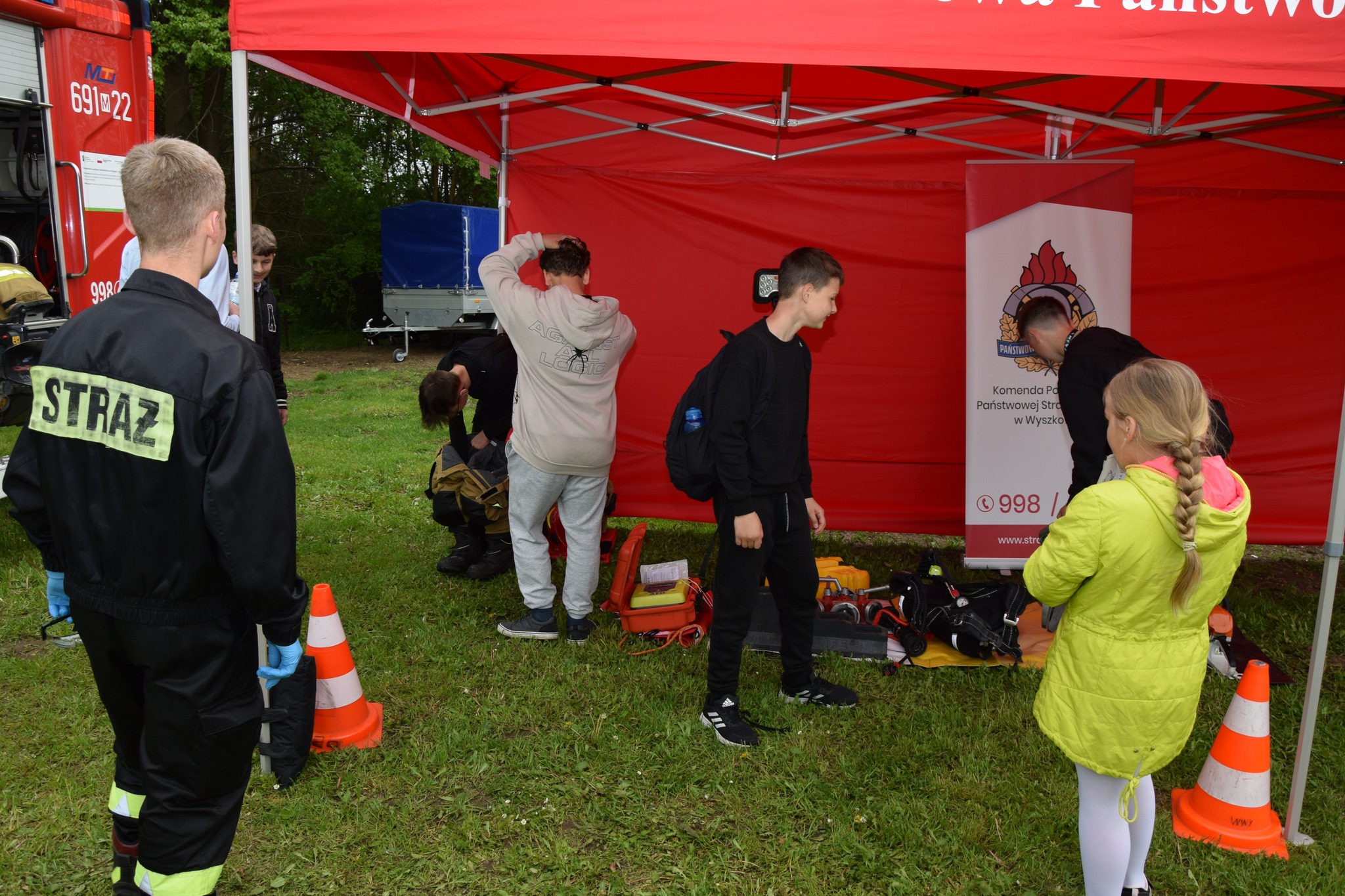 Strażacy z JRG PSP w Wyszkowie wspólnie z druhami OSP Brańszczyk zaprezentowali sprzęt, w tym do ratownictwa wodnego i medycznego.