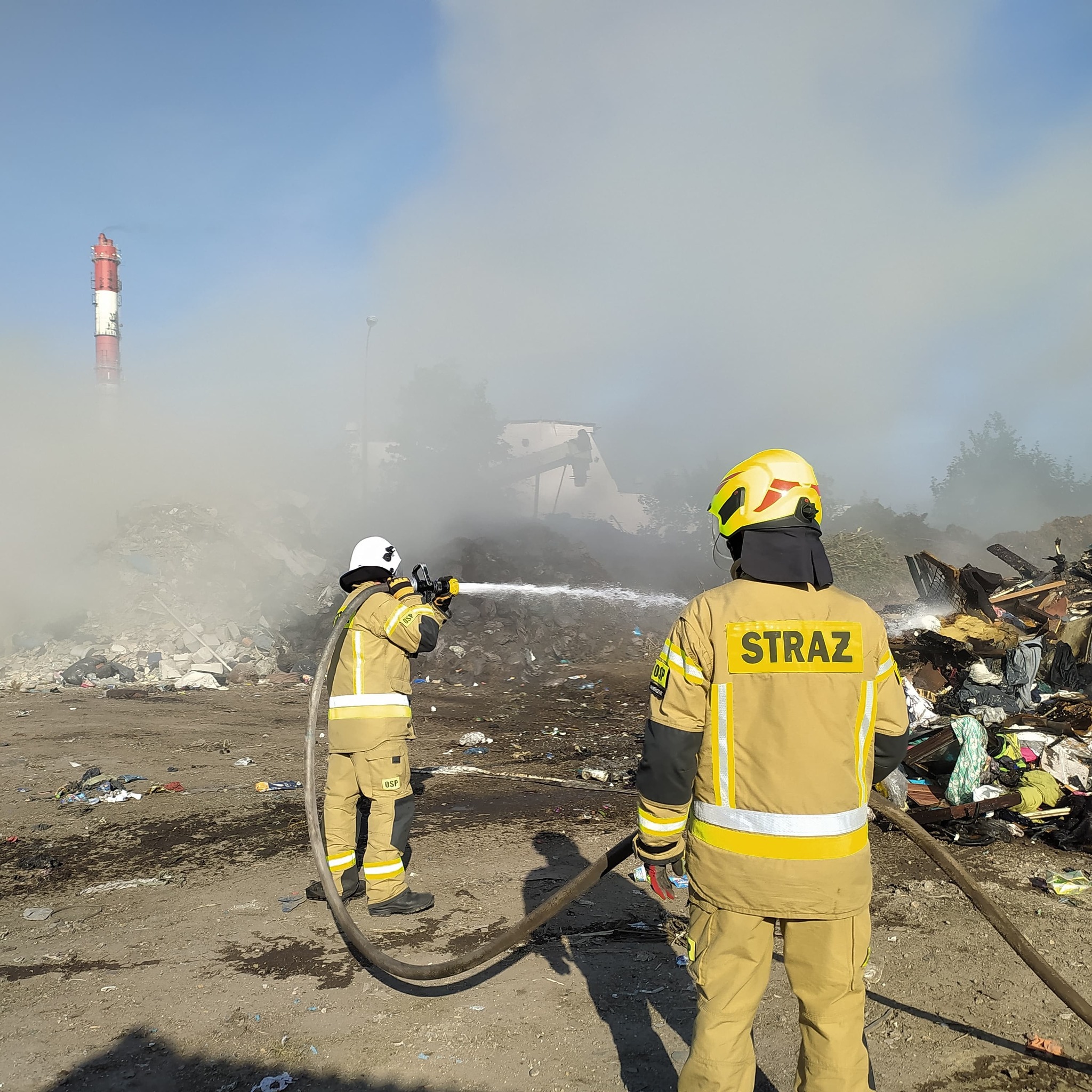 W związku z intensywnym zadymieniem, jakie towarzyszyło akcji gaśniczej, strażacy pracowali w sprzęcie ochrony układu oddechowego. Dodatkowym obciążeniem dla strażaków była wysoka temperatura powietrza.