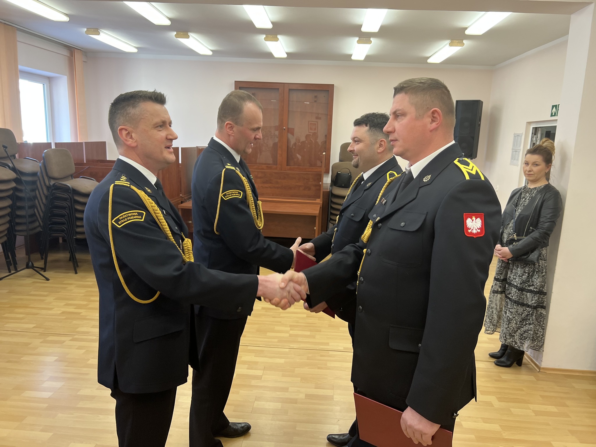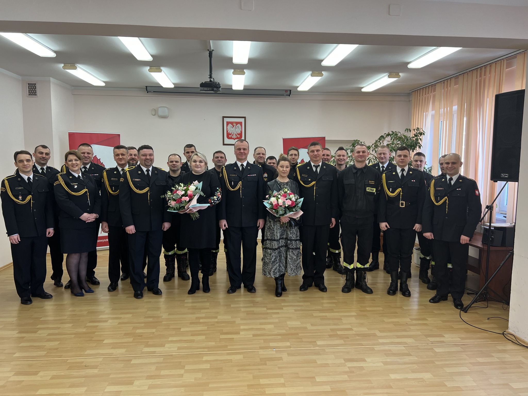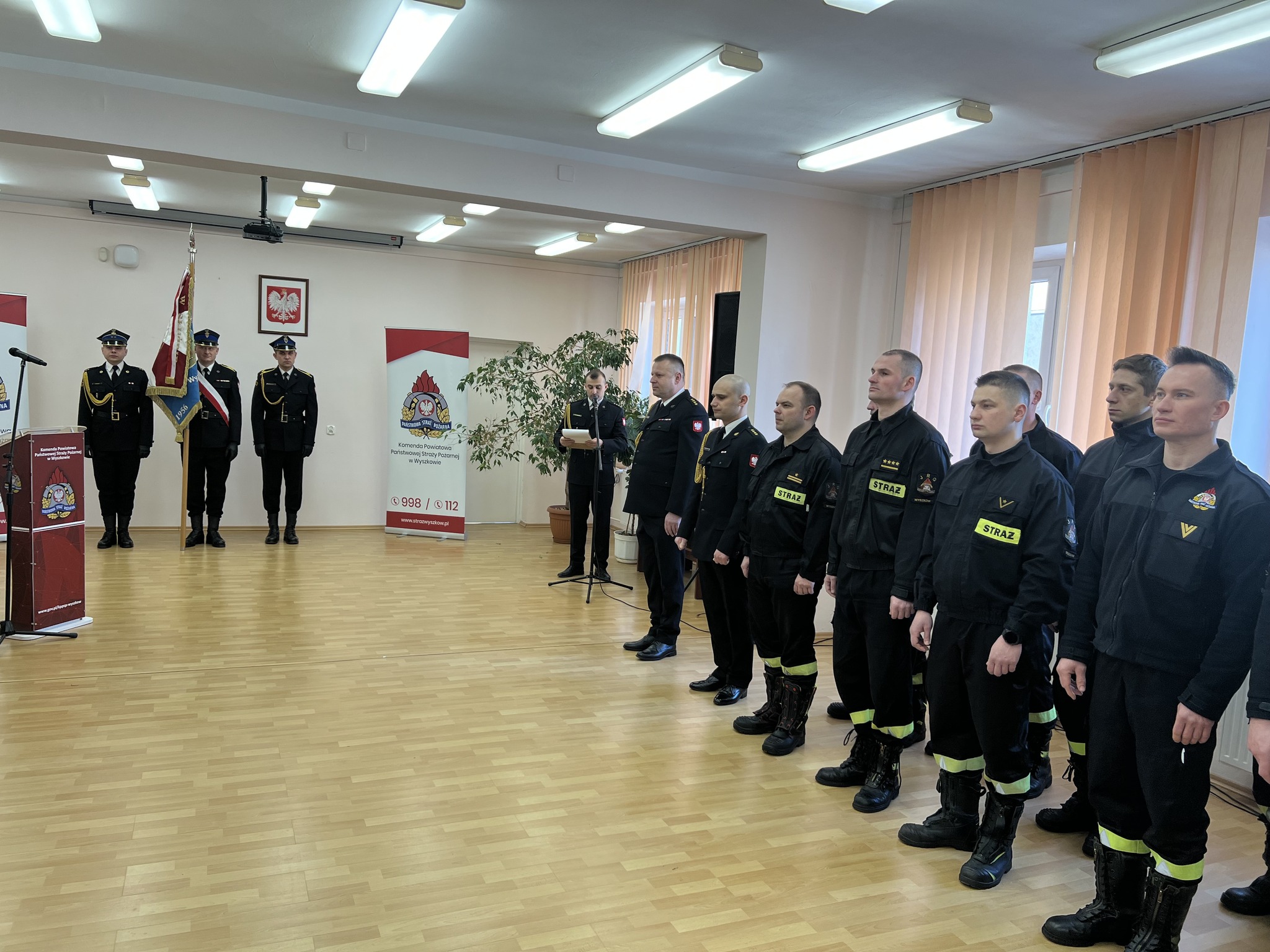 W uroczystej zbiórce uczestniczyli mł. bryg. Rafał Balcer – Komendant Powiatowy PSP w Wyszkowie wraz z zastępcą – st. bryg. Sławomirem Pietrzakiem, funkcjonariusze i pracownicy wyszkowskiej komendy, a także bliscy odchodzących na zaopatrzenie emerytalne. W trakcie uroczystości Komendant Powiatowy przybliżył przebieg służby i pracy zawodowej odchodzących funkcjonariuszy. W wielu serdecznych słowach podziękował strażakom za ogromny wkład pracy podczas służby, a także podkreślił ich dyspozycyjność oraz zaangażowanie w utrzymywaniu gotowości bojowej sprzętu i pojazdów w tutejszej Komendzie. Koleżanki i koledzy osobiście złożyli życzenia i przekazali okolicznościowe upominki.