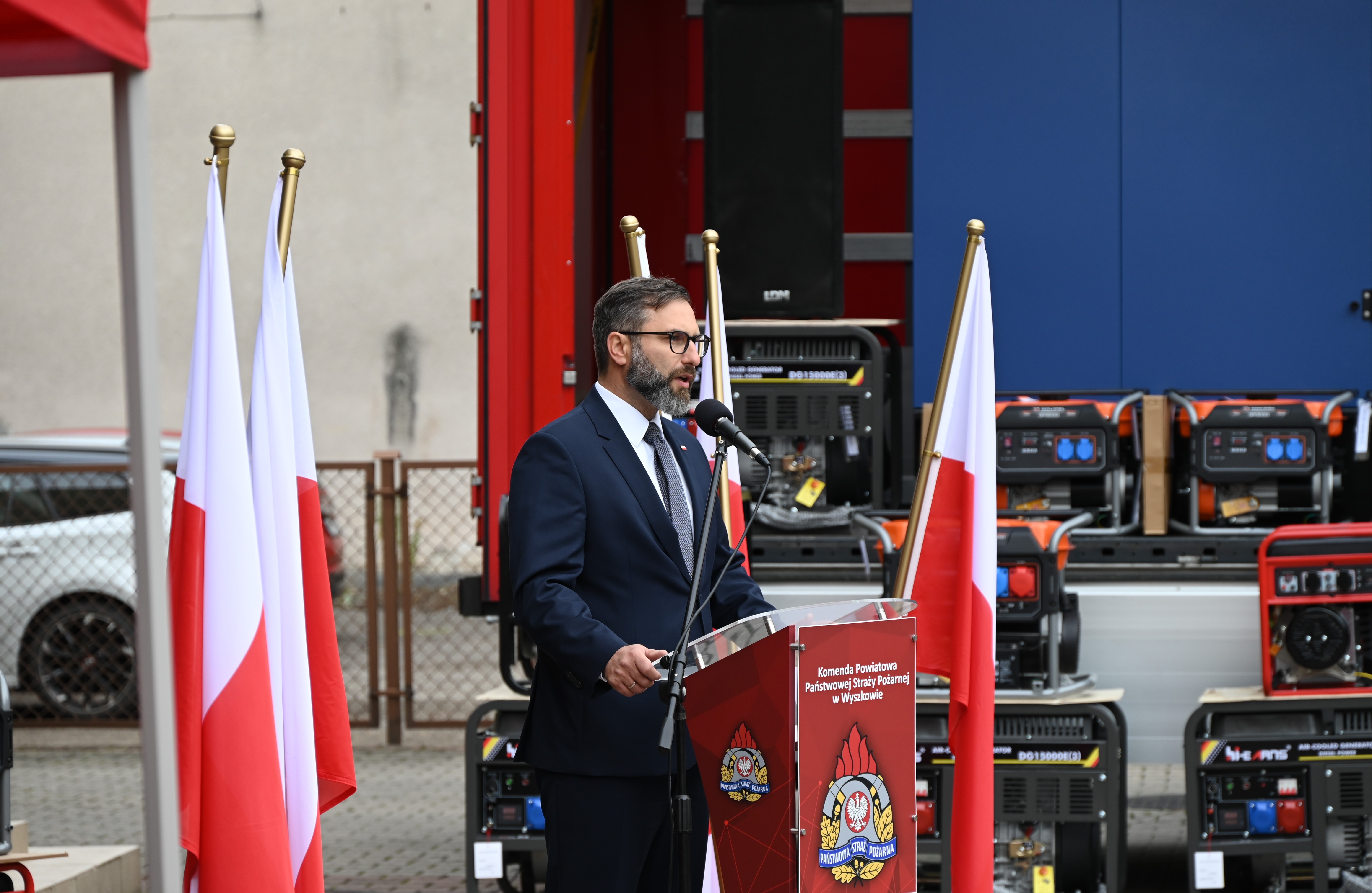- wręczenie aktów przekazania sprzętu ratowniczego (agregatów prądotwórczych) dla jednostek Państwowej i Ochotniczej Straży Pożarnej z terenu województwa mazowieckiego.