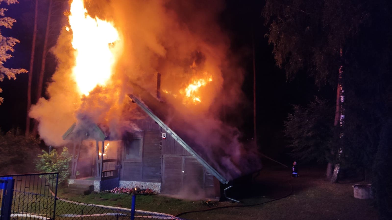 Drugą informację o pożarze domku letniskowego w miejscowości Popowo-Parcele odebrano o godzinie 3:02. W chwili przybycia pierwszego zastępu straży pożar był już w fazie rozwiniętej. Płomienie wychodziły na zewnątrz budynku przez otwory okienne i poszycie dachu. Działania straży polegały na podaniu 3 prądów wody. Aby opanować ugasić pożar niezbędne było użycie podnośnika hydraulicznego i przeprowadzenie prac rozbiórkowych dachu.