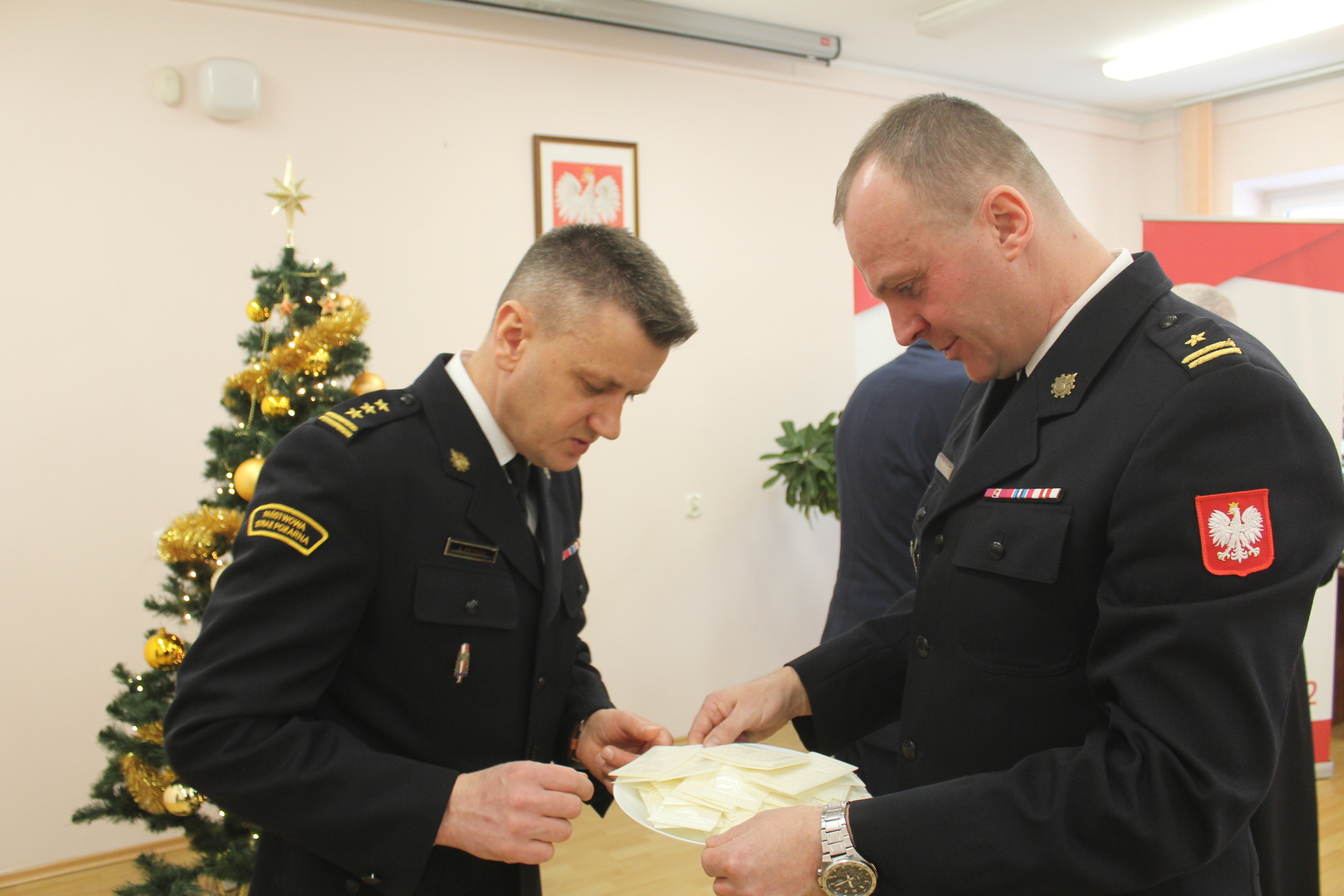 W dniu 21 grudnia 2022 r. w Komendzie Powiatowej Państwowej Straży Pożarnej w Wyszkowie odbyło się wigilijne spotkanie opłatkowe, w którym uczestniczyli funkcjonariusze, pracownicy cywilni Państwowej Straży Pożarnej w Wyszkowie oraz zaproszeni goście.