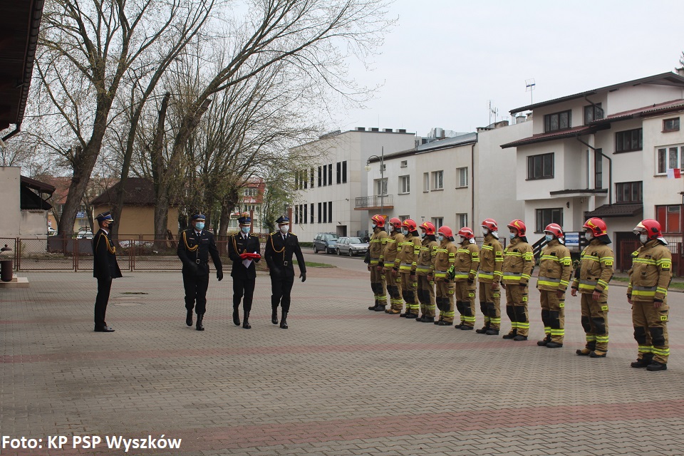 W dniu 2 maja 2021r. podczas zmiany służby, o godz. 08.15 na placu Komendy Powiatowej PSP w Wyszkowie odbył się uroczysty apel z okazji Dnia Flagi Rzeczypospolitej Polskiej.