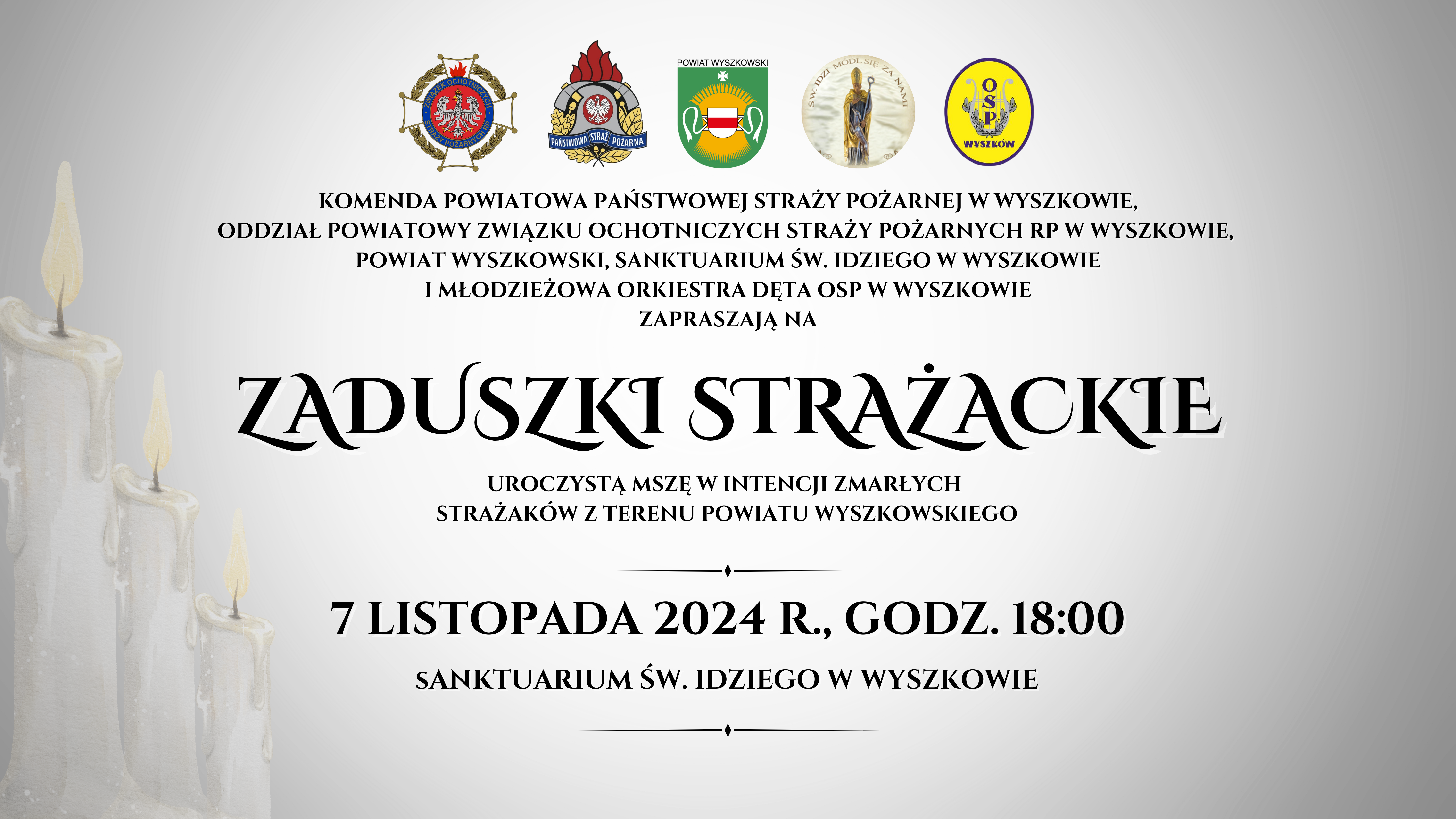 Serdecznie zapraszamy wszystkich strażaków, druhny i druhów, rodziny oraz wszystkich chętnych do uczestnictwa w Mszy Świętej w intencji zmarłych strażaków z terenu powiatu wyszkowskiego.
