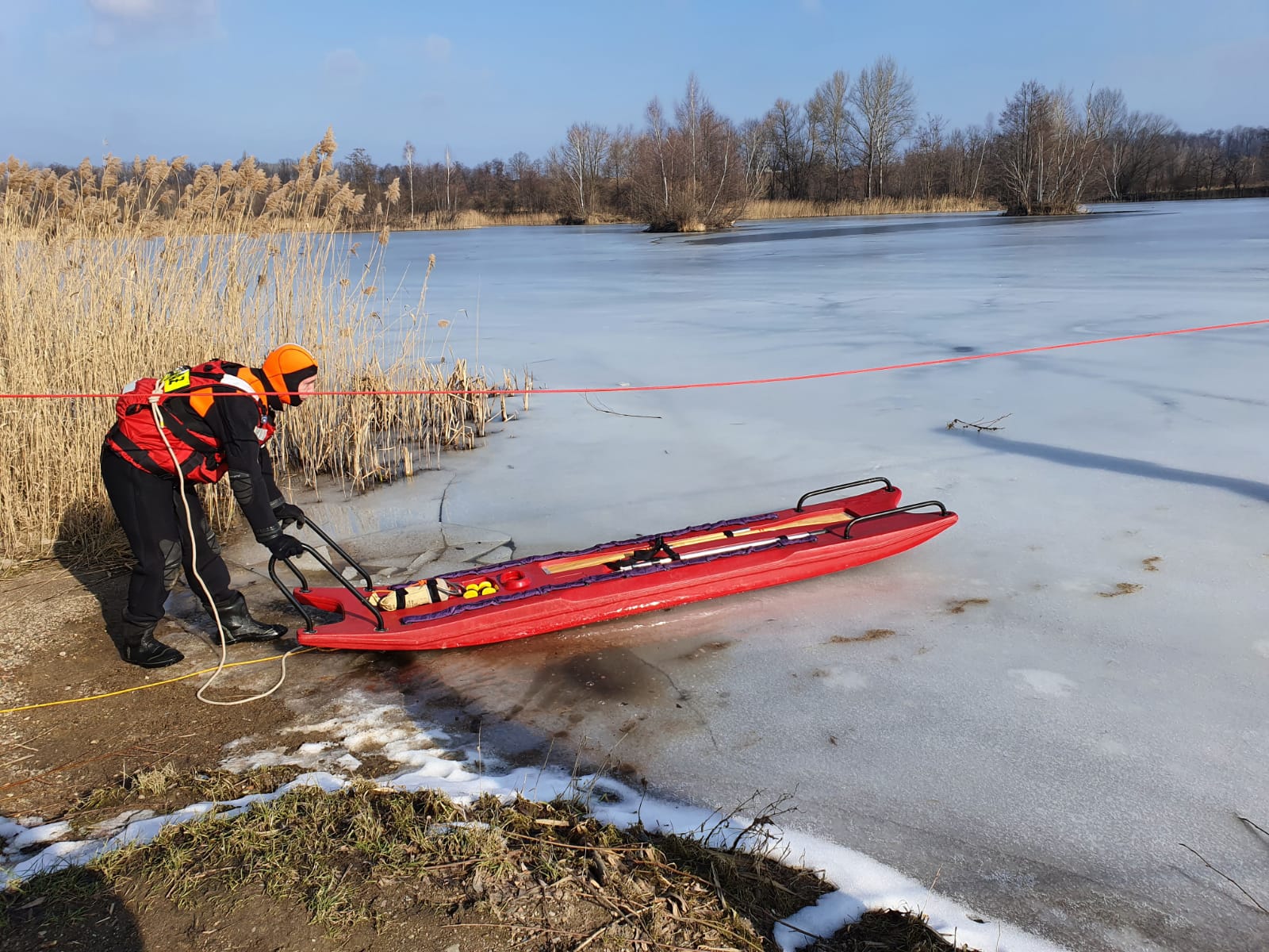 Mamy nadzieję, że doskonalenie umiejętności znajdzie odzwierciedlenie jedynie w procesie szkoleniowym a nie podczas realnych działań, w których zagrożone będzie życie i zdrowie ludzkie. W związku z powyższym po raz kolejny apelujemy o rozwagę, zdrowy rozsądek i nie wchodzenie na zamarznięte cieki i zbiorniki wodne.