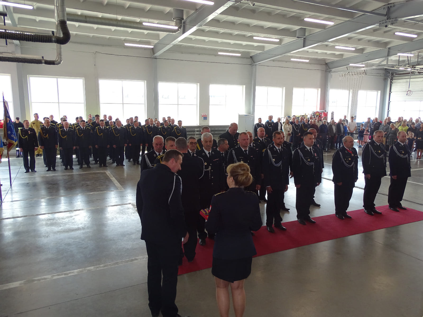 Zgromadzonych na uroczystej zbiórce powitał bryg. Tomasz Mądry Komendant Powiatowy PSP w Ząbkowicach Śl., który w trakcie przemówienia dziękował wszystkim zebranym strażakom za zaangażowanie podczas działań ratowniczo-gaśniczych, rodzinom strażaków za cierpliwość a także wyrozumiałość jakim ich darzą oraz wszystkim którzy przybyli aby zaszczycić swą obecnością Naszą uroczystość.