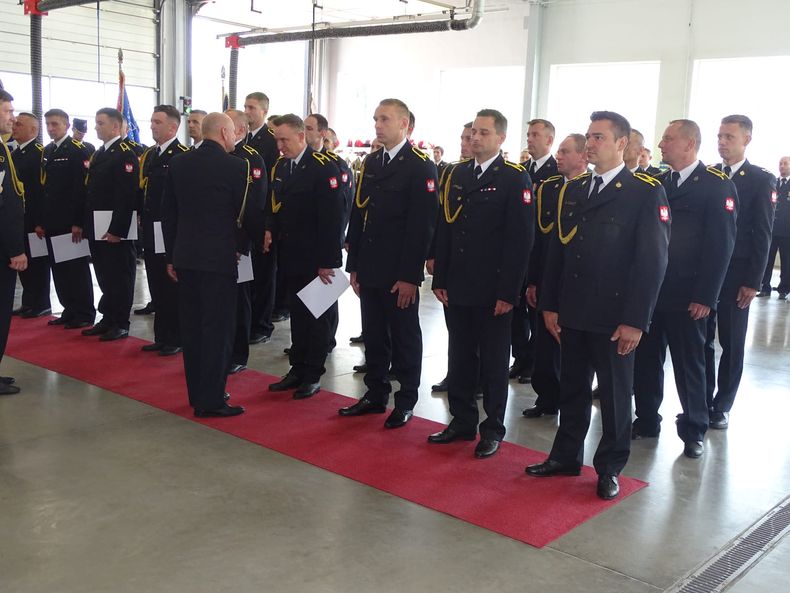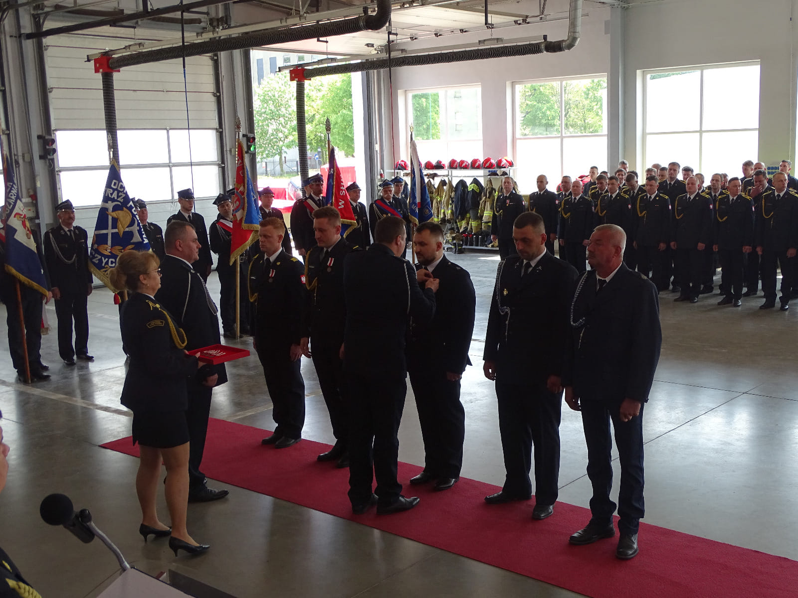 Następnie Zastępca Komendanta Wojewódzkiego PSP we Wrocławiu st.bryg. Arkadiusz Cytawa w asyście bryg. Tomasza Mądrego przystąpił do wręczania aktów nadania wyższych stopni służbowych: