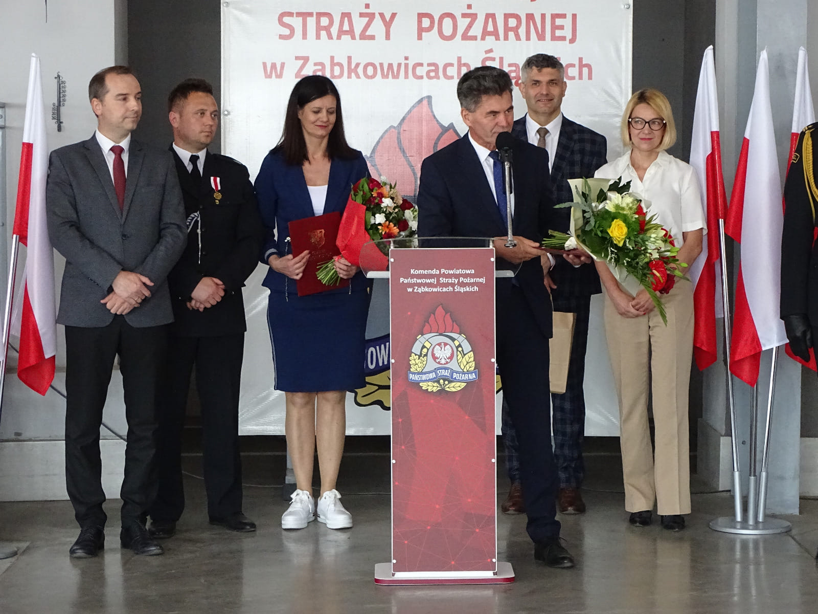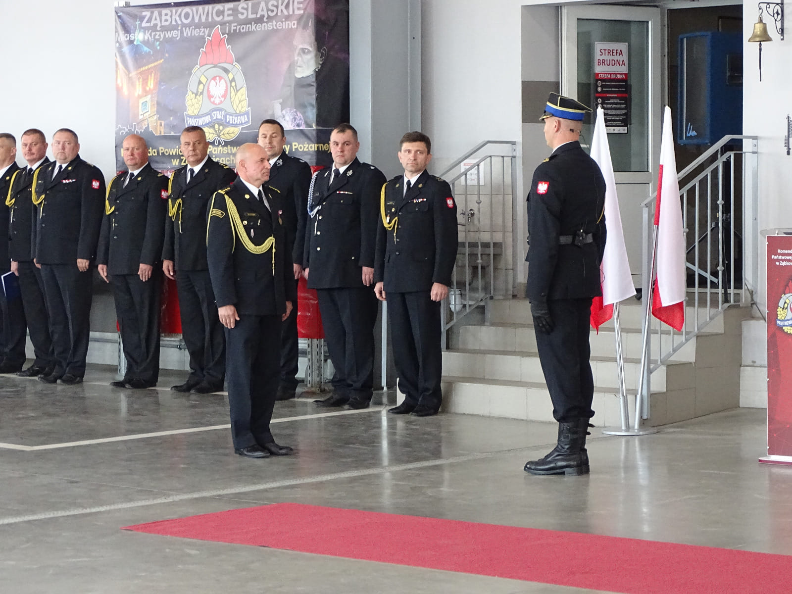 Uroczystość rozpoczęła się od złożenia meldunku Zastępcy Komendanta Wojewódzkiego PSP we Wrocławiu st. bryg. Arkadiuszowi Cytawie po czym nastąpiło wprowadzenie Pocztu Sztandarowego KP PSP w Ząbkowicach Śl. oraz uroczyste odśpiewanie hymnu państwowego.