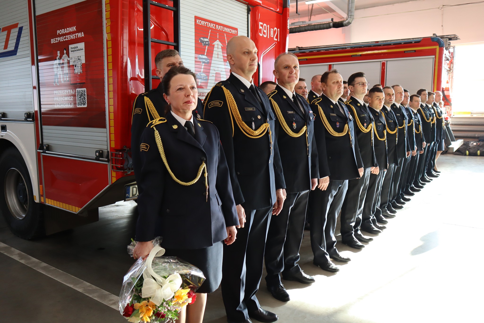 Podczas dzisiejszej uroczystości Dolnośląskiego Komendanta Wojewódzkiego Państwowej Straży Pożarnej reprezentował st.bryg. Andrzej Fischer, który w obecności funkcjonariuszy, pracowników cywilnych oraz rodziny st.bryg. Krzysztofa Welcza przyjął meldunek o zdaniu obowiązków.