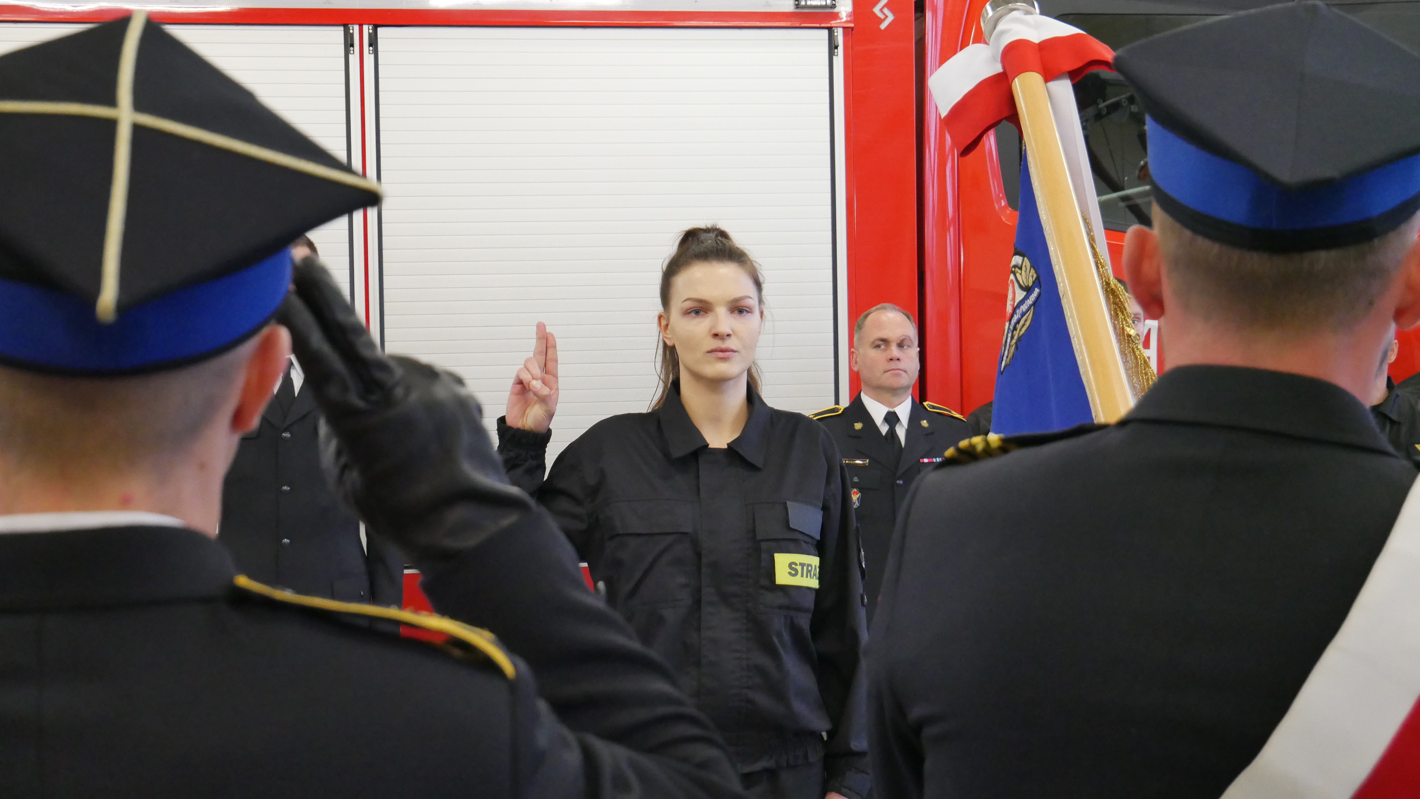„Ja, Obywatel Rzeczypospolitej Polskiej, świadom podejmowanych obowiązków strażaka, UROCZYŚCIE ŚLUBUJĘ (…)”.