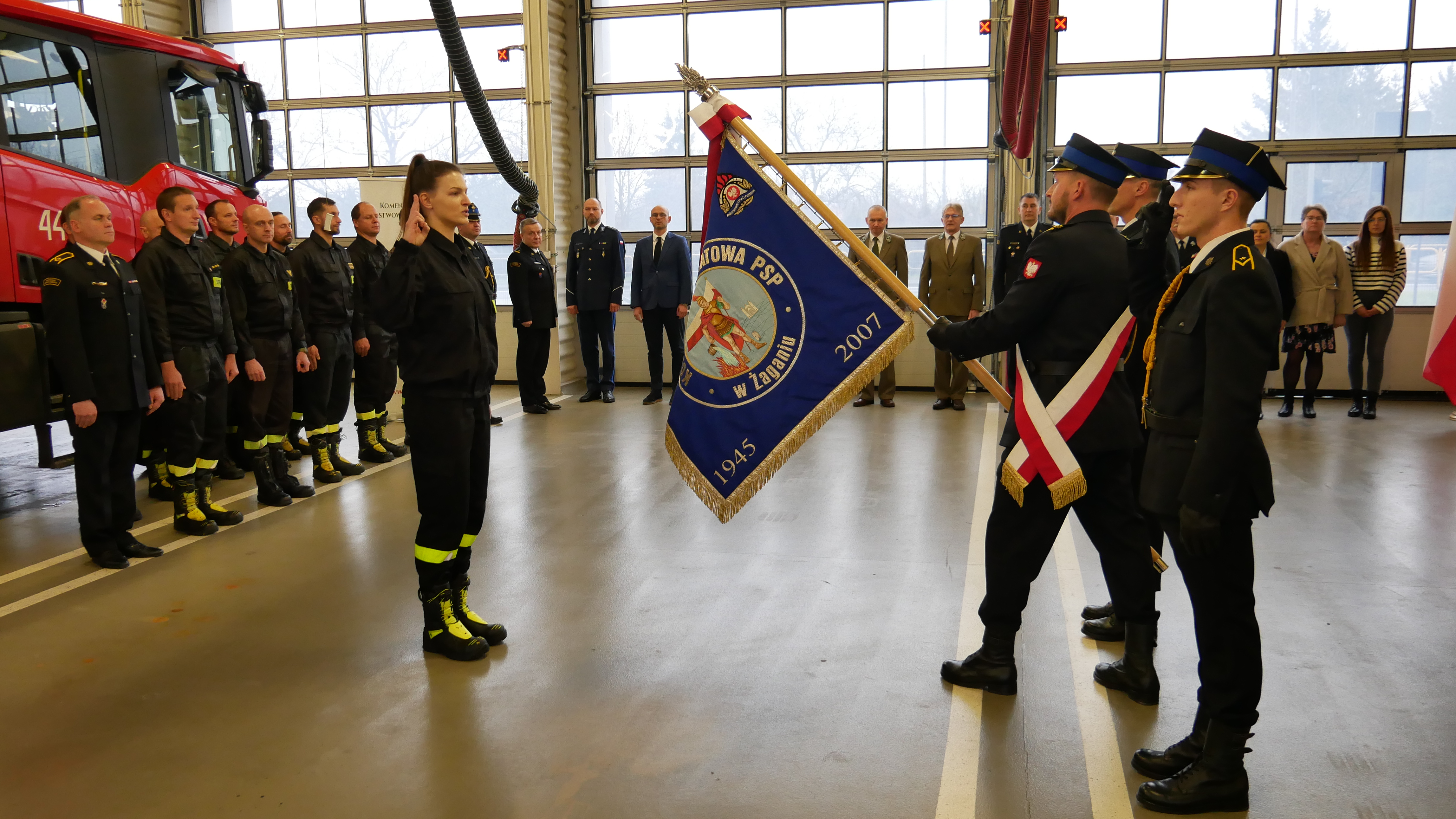 Tymi słowami rozpoczęła się pierwsza część uroczystego apelu, który odbył się 14 grudnia 2023.r w Komendzie Powiatowej Państwowej Straży Pożarnej w Żaganiu. Str. Patrycja Majdziak składając ślubowanie wstąpiła w szeregi żagańskich strażaków, z którymi będzie podejmowała wspólnie działania ratujące życie, zdrowie i mienie mieszkańców powiatu.
