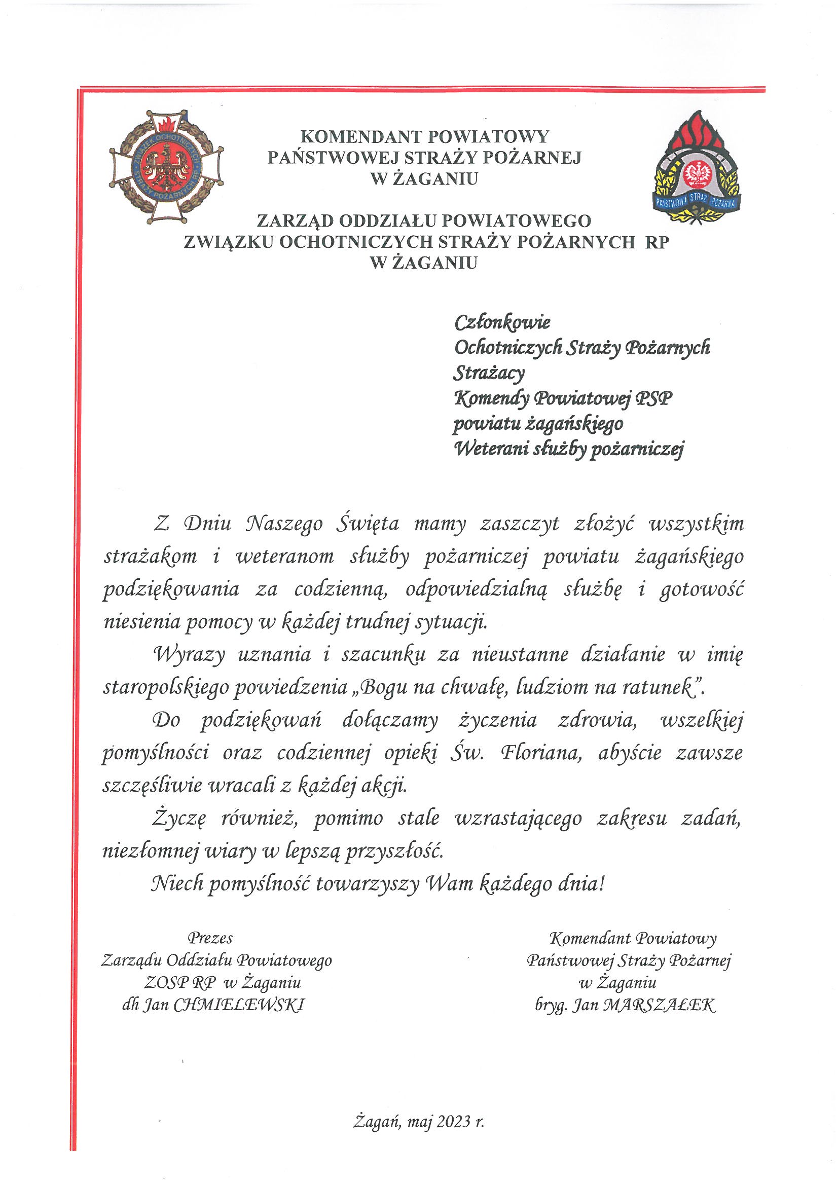 Życzenia Komendanata Powiatowego z okazji Dnia Strażaka 2023 04.05.2023 Zdjęcia (1) Pokaż zdjęcie 1 z galerii.