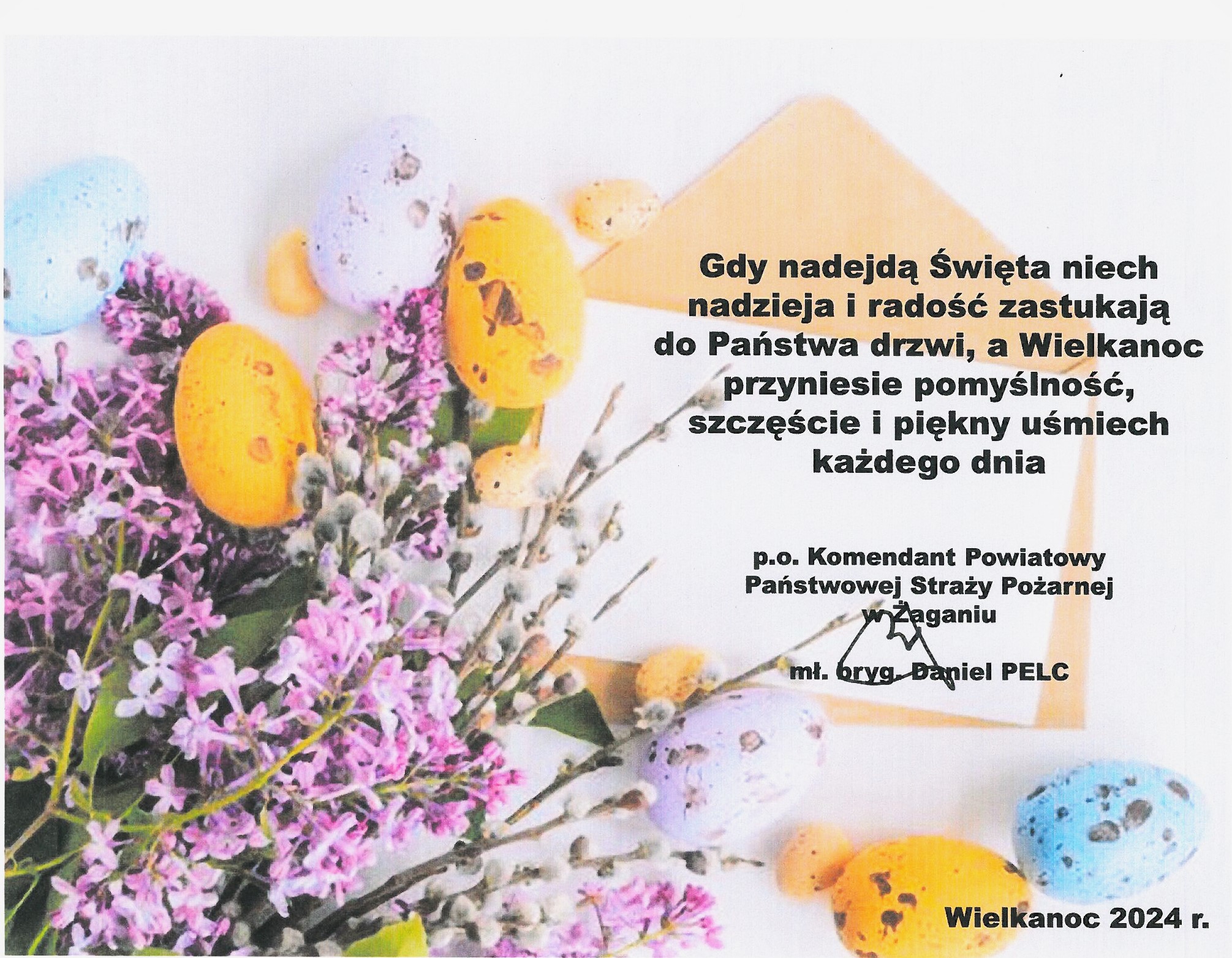 Życzenia Wielkanocne od p.o. Komendanta Powiatowego PSP w Żaganiu mł. bryg. Daniela Pelca