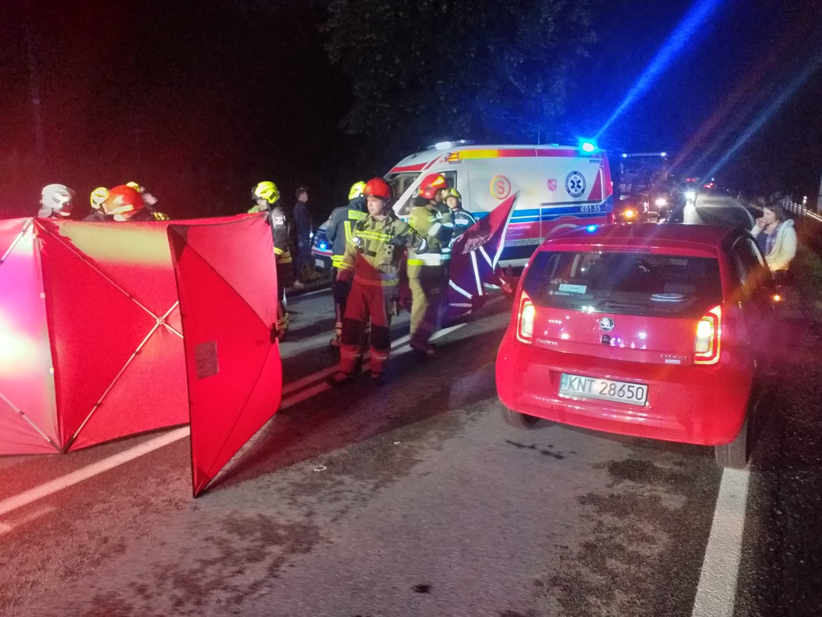 W dniu 2 sierpnia 2021r w godzinach wieczornych w Białym Dunajcu doszło do potracenia pieszego. Po przyjeździe na miejsce zdarzenia i przeprowadzeniu rozpoznania KDR ustalił: potrącenie pieszego na prostym odcinku DK 47. Kierująca samochodem bez obrażeń przebywała poza pojazdem. Samochód znajdował się na prawym pasie drogi z rozbitą przednią szybą i uszkodzonym lewym przodem samochodu. Osoba poszkodowana to mężczyzna lat 65, nieprzytomny znajdujący się na drodze w pozycji na wznak z widocznym urazem głowy – rozpoczęcie RKO, droga zablokowana. Zabezpieczono miejsce zdarzenia poprzez odpowiednie ustawienie samochodów z włączoną sygnalizacją świetlną, rozstawienie stożków ostrzegawczych z równoczesnym wysłaniem roty medycznej do zabezpieczenia poszkodowanego oraz oświetleniu terenu działań ratowniczych, rozłożono parawan oraz taśmę ostrzegawczą. Po przeprowadzeniu ponownego badania urazowego, ratownicy stwierdzili dalsze urazy: uraz i rana głowy anizokoria źrenic, nie reagują na światło, uraz i rana biodra - podejrzenie urazu miednicy, uraz kończyny prawej - podejrzenie złamania w stawie kolanowym. Po zabezpieczeniu dróg oddechowych poprzez złożenie rurki UG i dalsze wspomaganie oddechu, zabezpieczono poszkodowanego, ustabilizowano i opatrzono obrażenia uwidocznione w badaniu urazowym. W trakcie tych działań na miejsce przybywa ZRM, któremu przekazano poszkodowanego. Na czas prowadzenia czynności przez policję zorganizowano objazd bocznymi drogami - kierowanie ruchem drogowym przez strażaków. Po zakończeniu działań Policji, drogę uprzątnięto i przywrócono ruch w obydwu kierunkach.