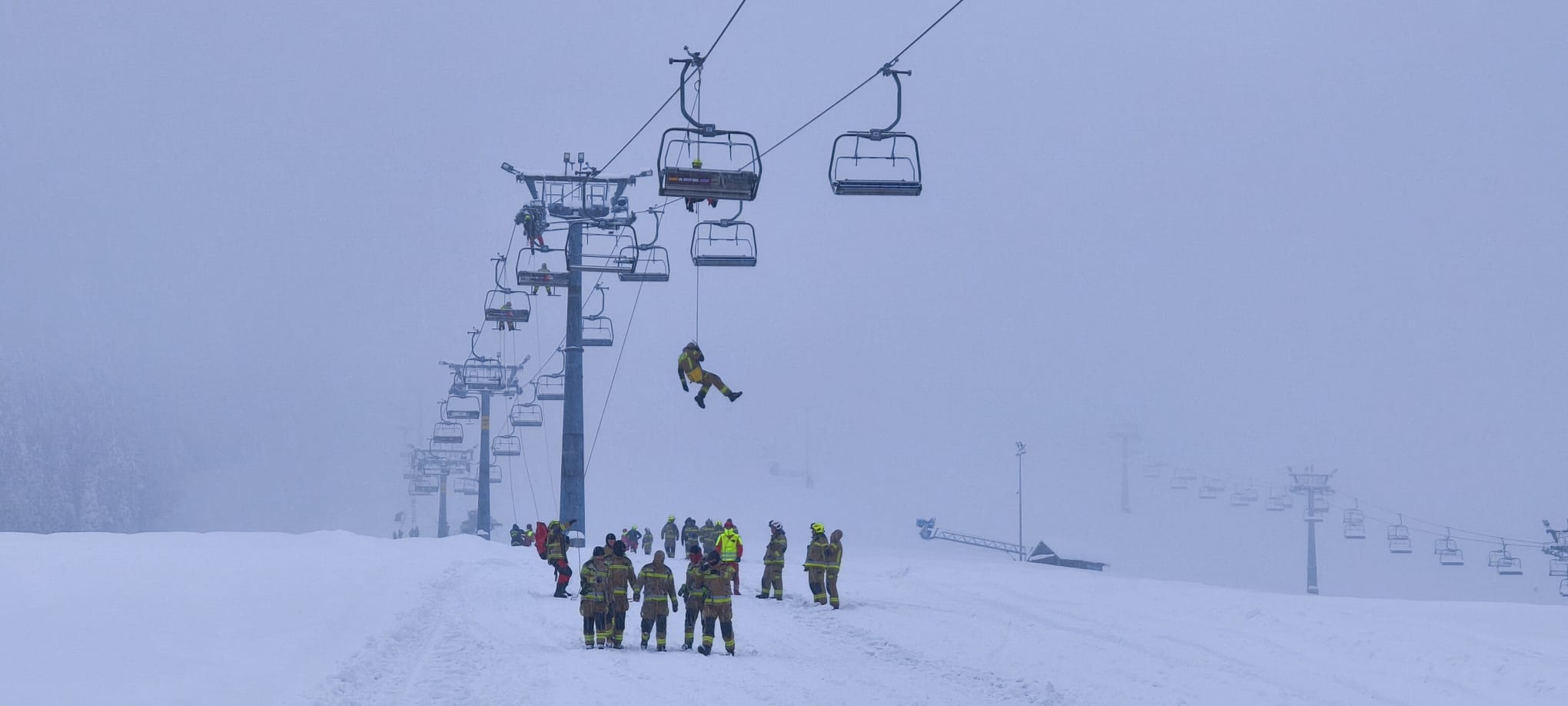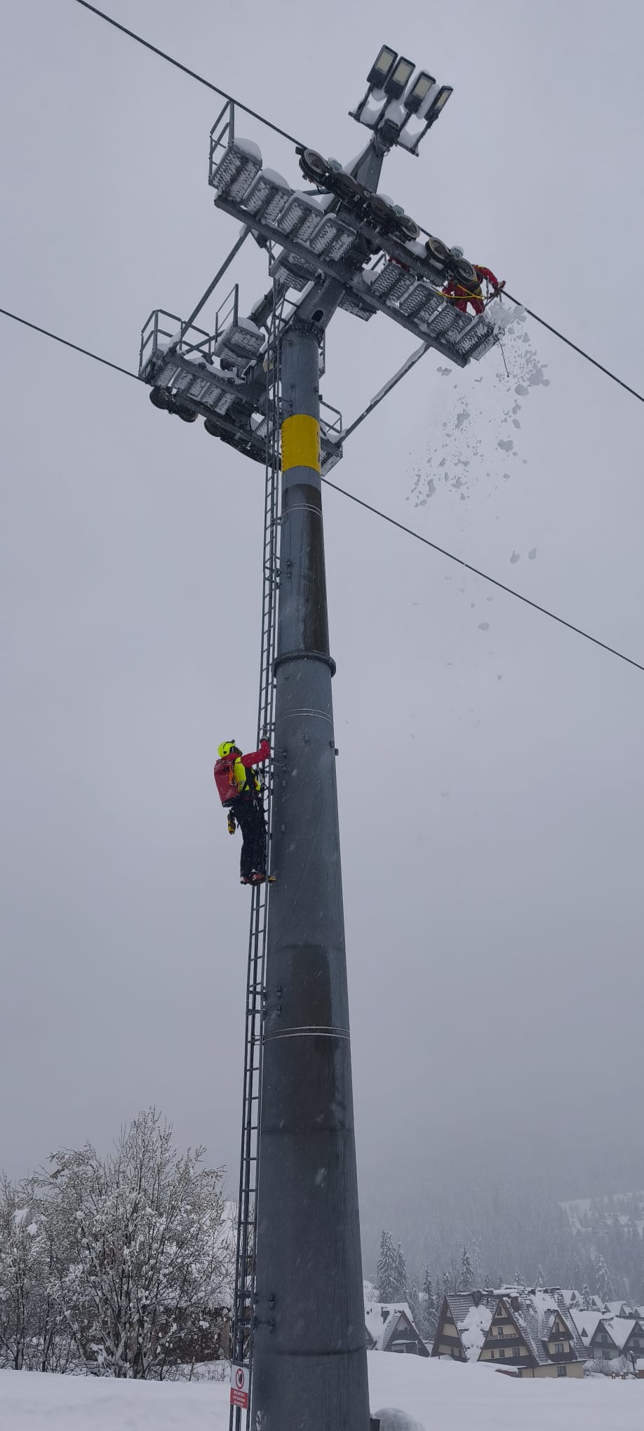 Epizod ćwiczeń zakładał awarię kolei krzesełkowej. Z powodu braku możliwości uruchomienia zasilania awaryjnego podjęto decyzję o ewakuacji użytkowników przy pomocy drabin oraz technik linowych.