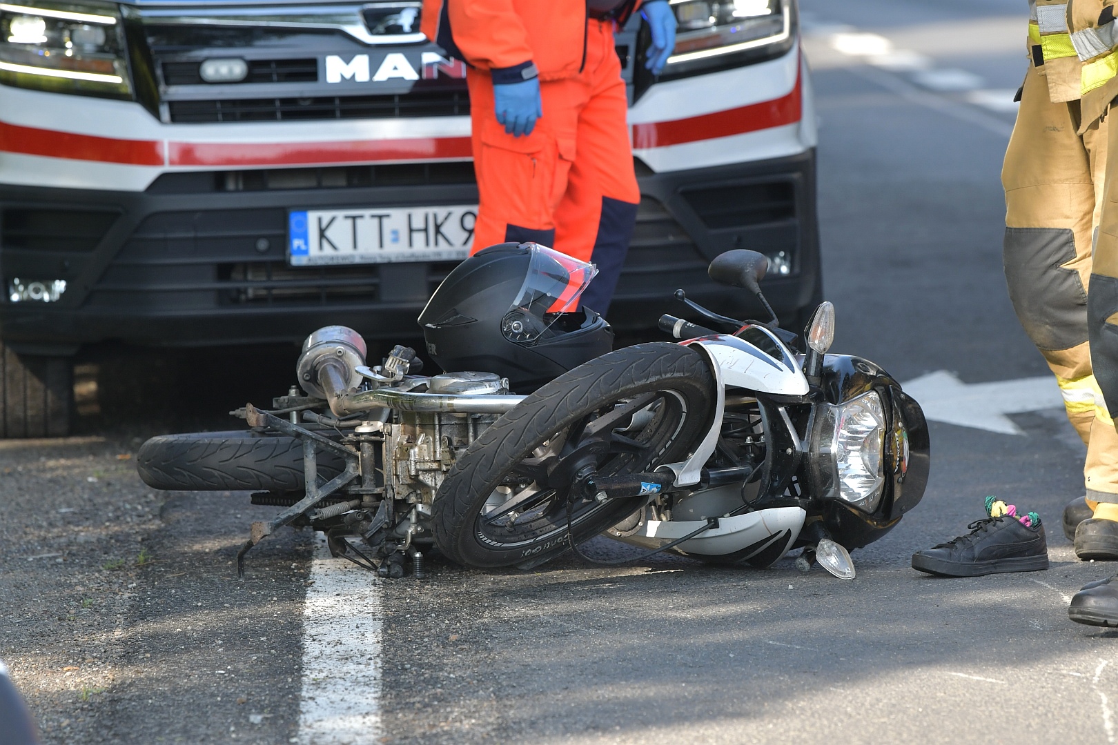 Kolizja motocyklisty z samochodem osobowym.