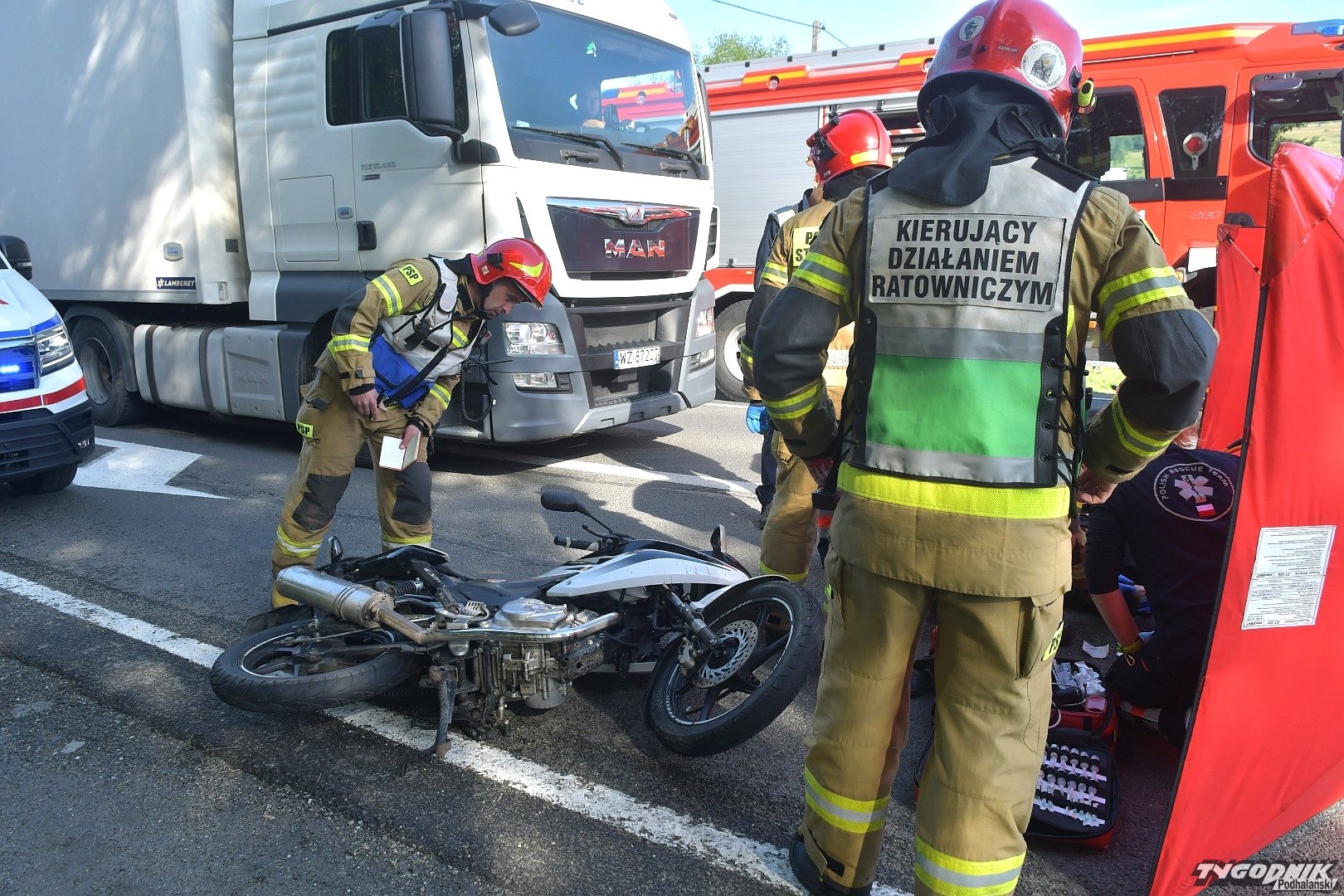 | Kolizja motocyklisty z samochodem osobowym. | 1.0 | 08.07.2022 09:57 mł. bryg. Krzysztof Leja |