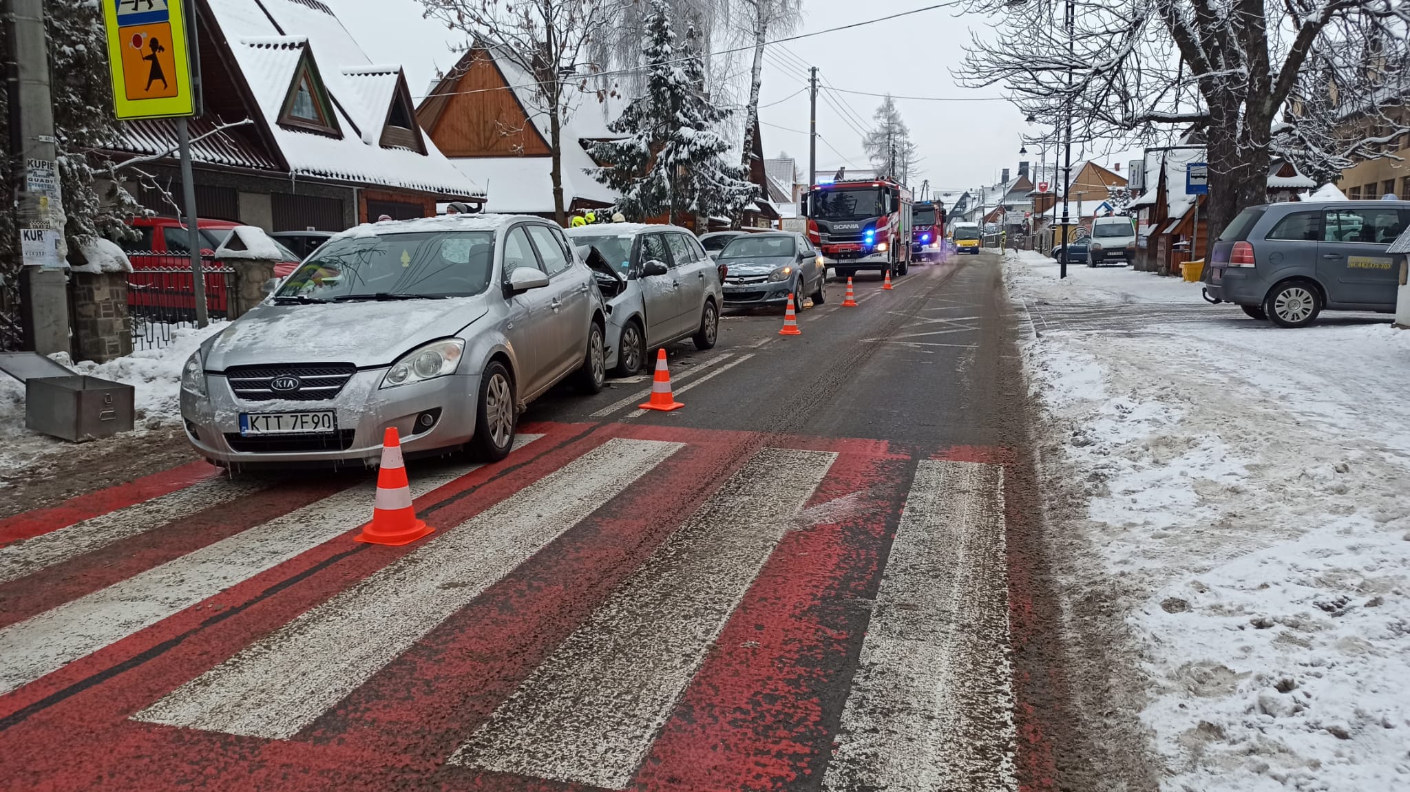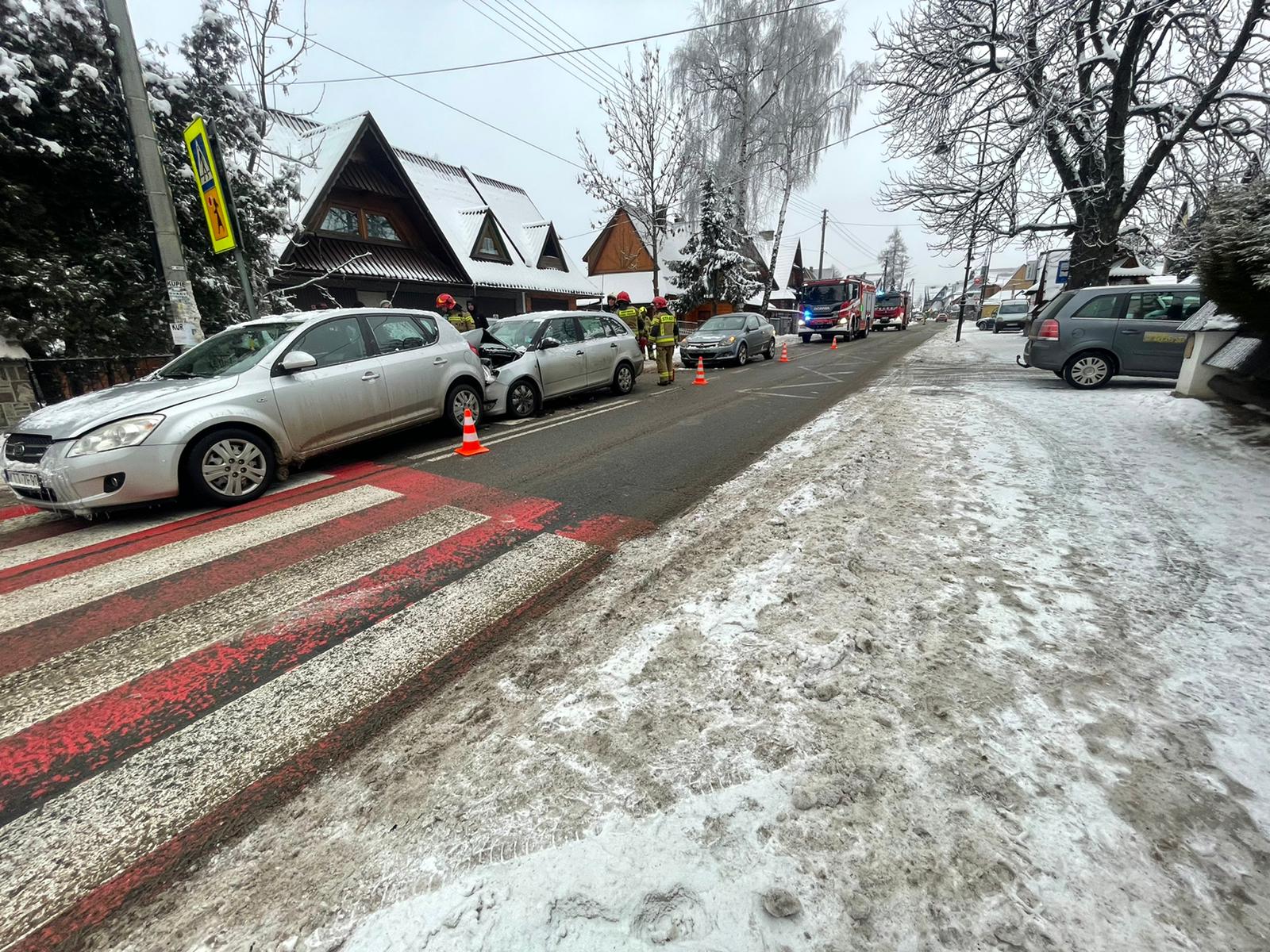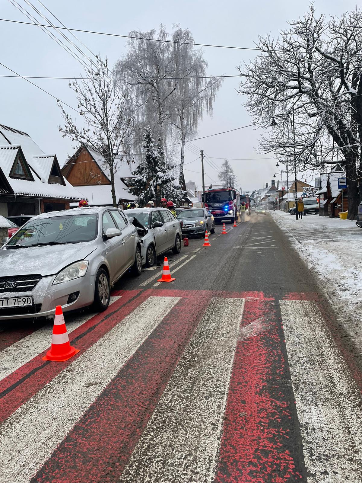 12 grudnia 2021 w miejscowości Bukowina Tatrzańska na ulicy Kościuszki zderzyły się trzy samochody osobowe na prostym odcinku drogi. Samochód osobowy KIA zatrzymał się przed przejściem dla pieszych, za nim pojazd Skoda Fabia. Jadący za tymi pojazdami samochód osobowy Opel Astra nie zachował ostrożności i uderzył w tył pojazdu Skoda, który następnie uderzył w tył pojazdu KIA. Po przyjeździe pierwszego zastępu z OSP Bukowina Tatrzańska na miejsce zdarzenia KDR po dokonanym rozpoznaniu ustalił, że żadna z osób podróżująca samochodami nie odniosła obrażeń i nie wymaga udzielenia KPP. Zabezpieczono miejsce kolizji poprzez odpowiednie ustawienie samochodu pożarniczego oraz rozstawienie stożków ostrzegawczych. Zabezpieczono wycieki płynów eksploatacyjnych z rozbitych samochodów, wyznaczono strażaków do kierowania ruchem drogowym (ruch odbywał się wahadłowo). Po przyjeździe Policji funkcjonariusze Wydziału Ruchu Drogowe przystąpili do czynności służbowych. Po zakończeniu działań przez Policję rozbite pojazdy usunięto z drogi, która następnie została uprzątnięta z kawałków rozbitej karoserii oraz szkła. Usunięto rozlane plamy z płynów eksploatacyjnych. Przywrócono całkowicie ruch drogowy.