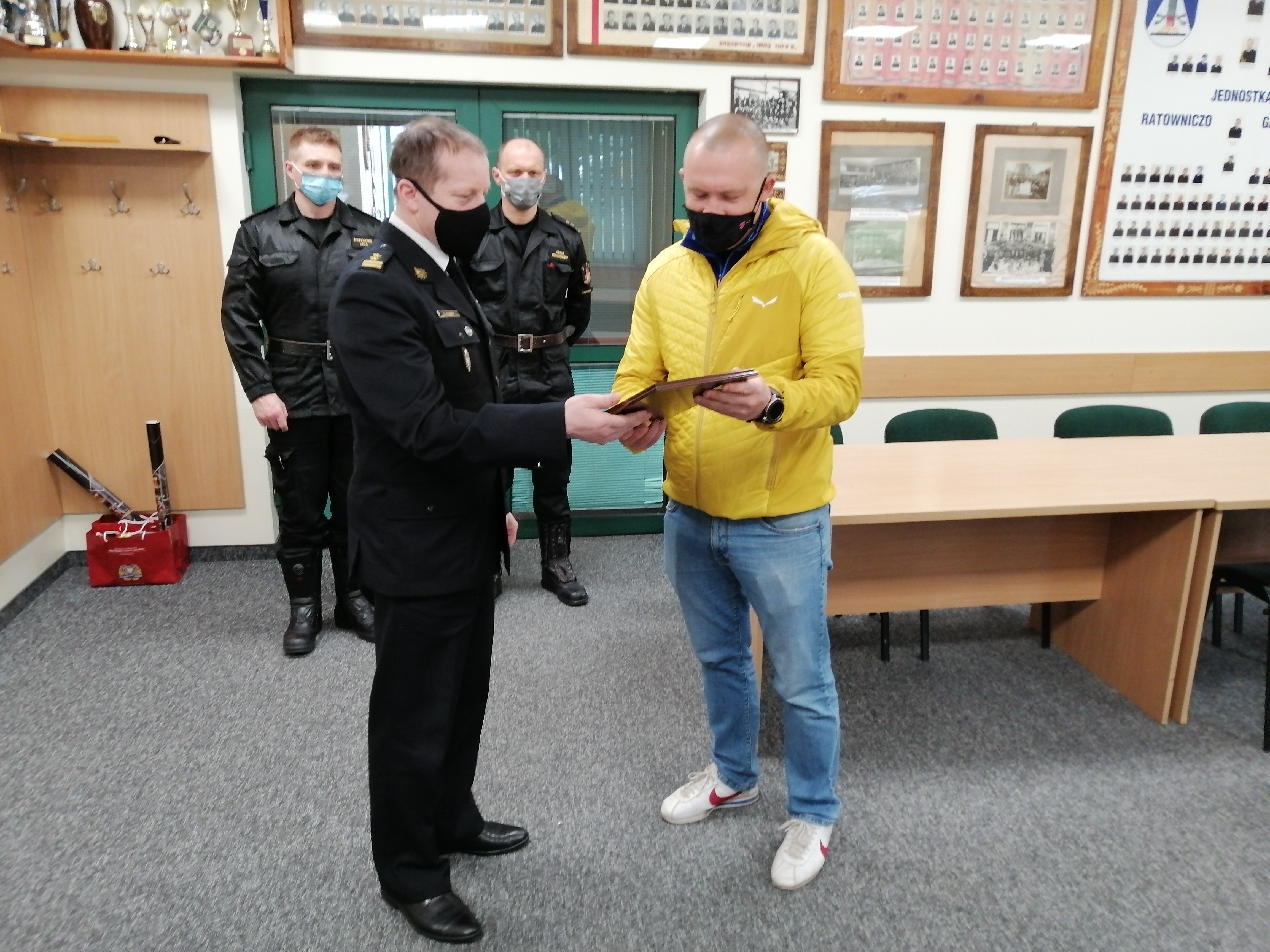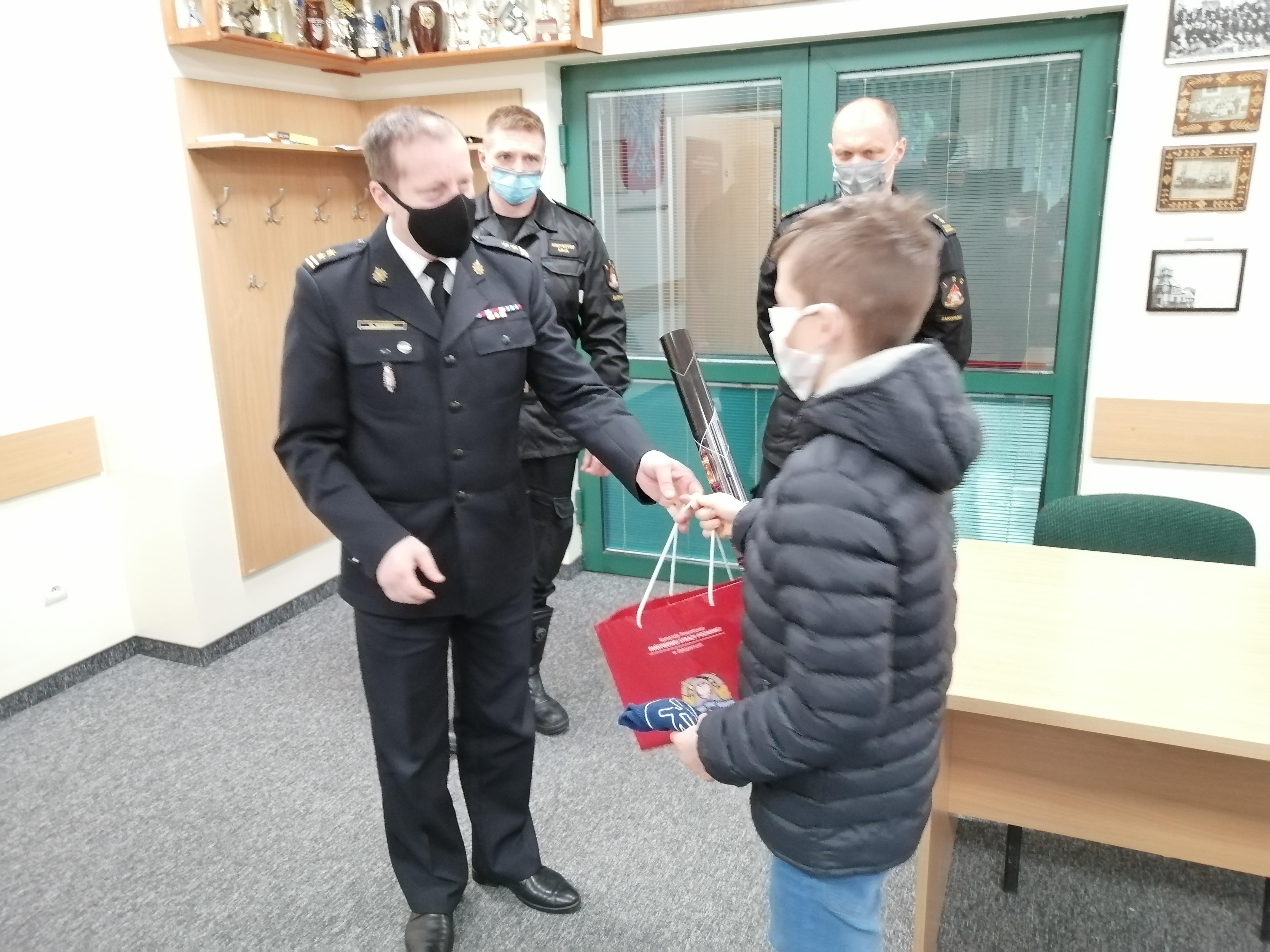 | Komendant Powiatowy PSP w Zakopanem bryg. Grzegorz Worwa podziękował dwóm bohaterom - Szymonowi Gąsienica-Daniel i jego synowi Jasiowi za uratowanie kobiety z pożaru | 1.0 | 23.04.2021 12:35 mł. bryg. Krzysztof Leja |