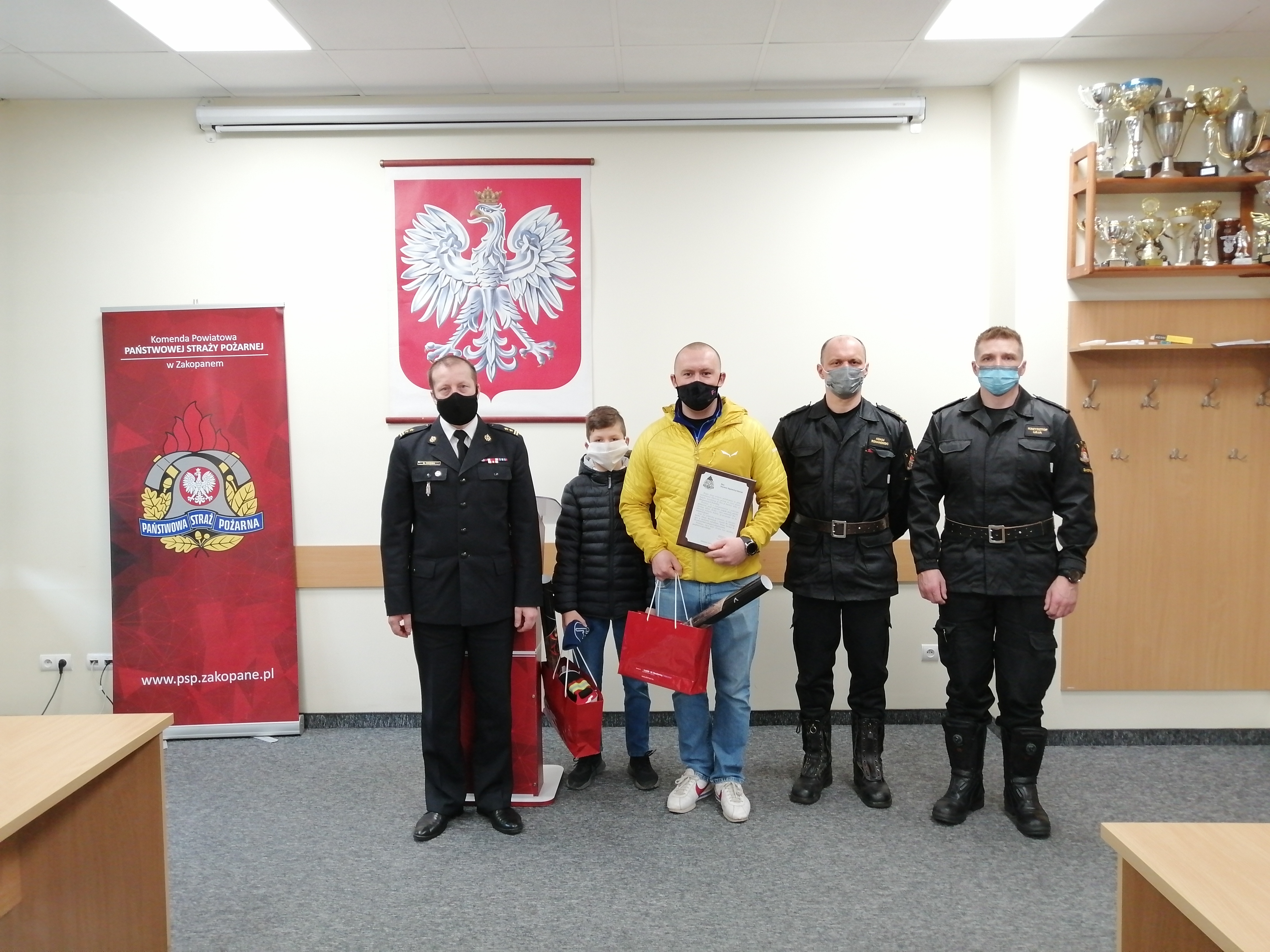 W dniu 23 kwietnia 2021 r. Komendant Powiatowy PSP w Zakopanem bryg. Grzegorz Worwa podziękował dwóm bohaterom - Szymonowi Gąsienica-Daniel i jego synowi Jasiowi za uratowanie kobiety z pożaru.