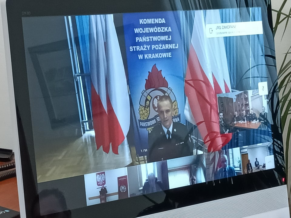 We wtorek 22 lutego odbyła się narada roczna Komendy Powiatowej Państwowej Straży Pożarnej w Zakopanem. Z uwagi na pandemię koronawirusa, miała ona formę online, uczestnicy narady spotkali się zdalnie w formie wideokonferencji. W spotkaniu podsumowującym rok 2021 wzięli udział funkcjonariusze Komendy Powiatowej Państwowej Straży Pożarnej w Zakopanem, przedstawiciele ZOSP RP z terenu powiatu tatrzańskiego, a także przedstawiciele władz samorządowych.