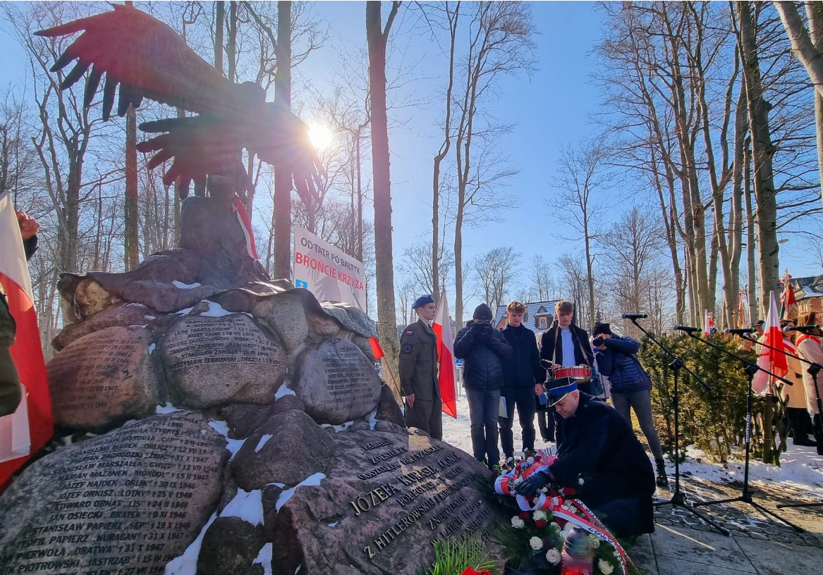 W środę 1 marca br. przy pomniku Józefa Kurasia „Ognia” w Parku im. Prezydenta RP Lecha Kaczyńskiego w Zakopanem odbyły się uroczyste obchody Dnia Żołnierzy Wyklętych. Uczestniczył w nich Komendant Powiatowy Państwowej Straży Pożarnej w Zakopanem st. bryg. Grzegorz Worwa wraz z Zastępcą st. kpt. Jarosławem Kośmińskim oraz poczet sztandarowy Komendy Powiatowej PSP w Zakopanem a także wiele instytucji i szkół, przedstawiciele zakopiańskich samorządów, służb mundurowych, parafii oraz mieszkańcy. Uroczystość poprzedziła uroczysta Msza Święta. Następnie odbył się przemarsz z Sanktuarium na Krupówkach pod pomnik „Ognia”