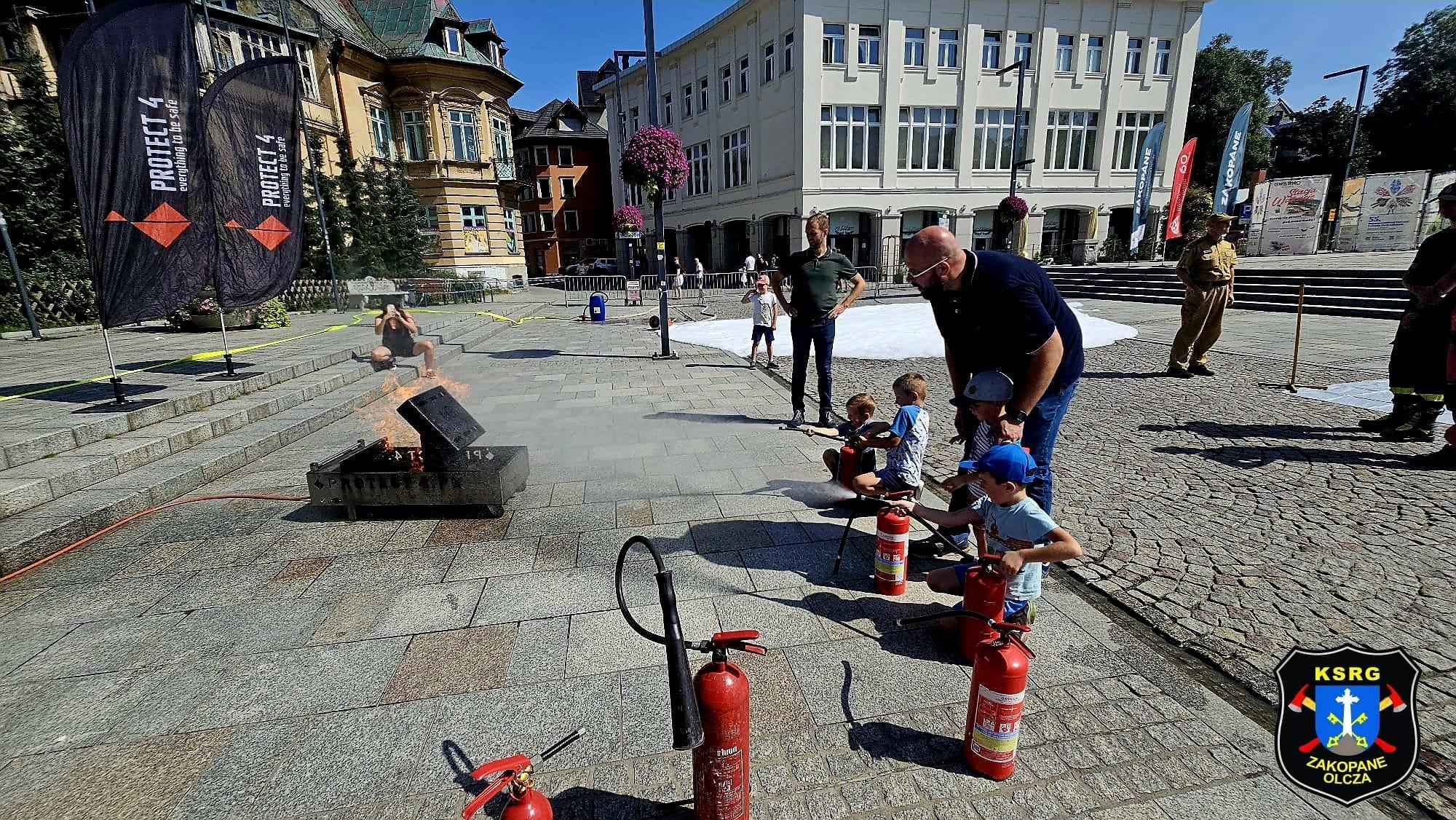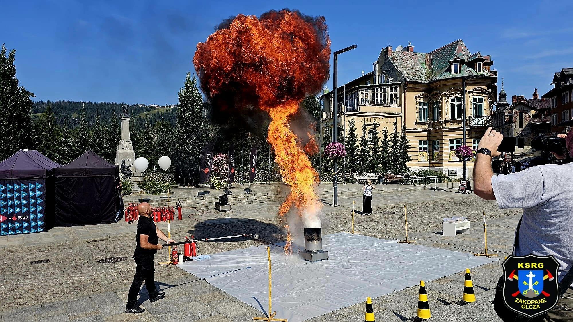 Następnie w dniu 24 sierpnia 2024 roku odbyło się praktyczne szkolenie z zakresu ochrony przeciwpożarowej i zasad postępowania na wypadek ewakuacji z obiektów drewnianych organizowane na Placu Niepodległości w Zakopanem. W szkoleniu aktywny udział wzięli funkcjonariusze Z Komendy Powiatowej PSP w Zakopanem oraz druhowie z OSP Zakopane – Olcza.