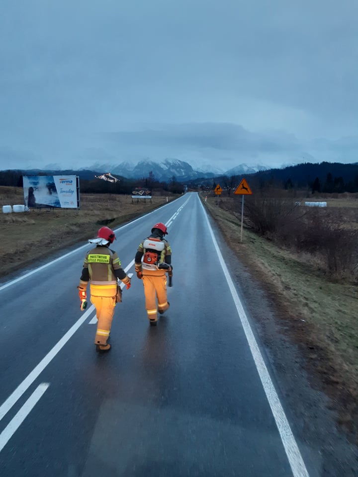 W dniu 5 stycznia o godzinie 15:27 Dyżurny Operacyjny Stanowiska Kierowania Komendanta Powiatowego odebrał zgłoszenie o plamie substancji ropopochodnej na Drodze Krajowej numer 49 ciągnącej się od miejscowości Białka Tatrzańska do miejscowość Jurgów. Po przybyciu na miejsce zdarzenia pierwszego zastępu straży pożarnej z OSP Białka Tatrzańska, strażacy zabezpieczyli teren prowadzonych działań ratowniczych poprzez odpowiednie ustawienie samochodu pożarniczego, następnie za pomocą opryskiwacza spalinowego przystąpili do usuwania plamy ropopochodnej z jezdni. Po przyjeździe zastępu z JRG, kierujący działaniami ratowniczymi zapoznał się z sytuacją, podzielił zadysponowane do zdarzenia jednostki OSP z Bukowiny Tatrzańskiej oraz Jurgowa a także zastęp z JRG na odcinku drogi gdzie znajdowała się plama substancji ropopochodnej (długość około 10 km, szerokość plamy 0,5 m). Ratownicy przy pomocy opryskiwaczy spalinowych usunęli powstałą plamę. Po jej usunięciu nie stwierdzono zagrożenia dla użytkowników jezdni.