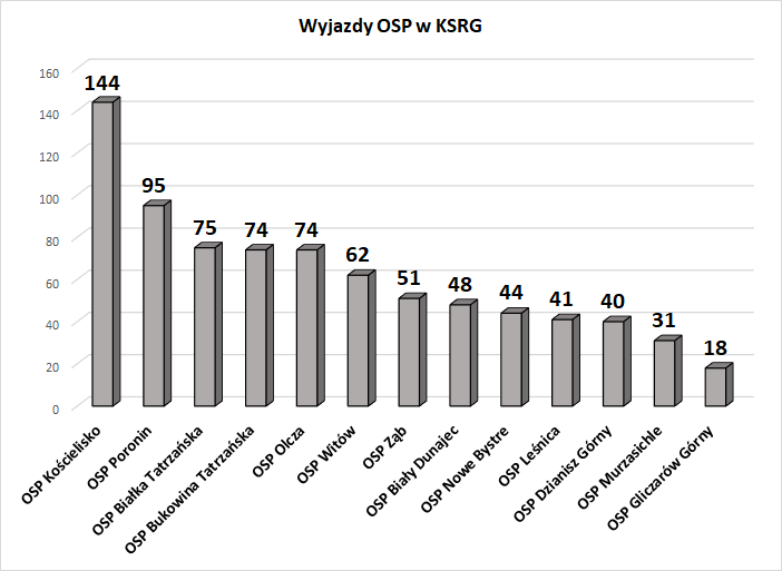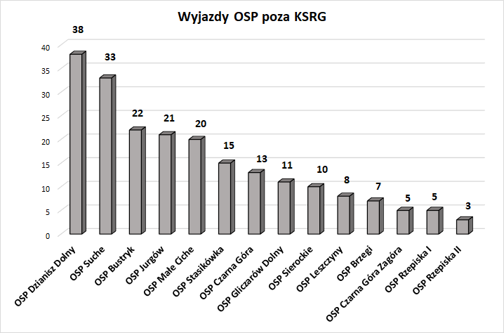 Jednostki OSP poza KSRG z największą ilością wyjazdów: