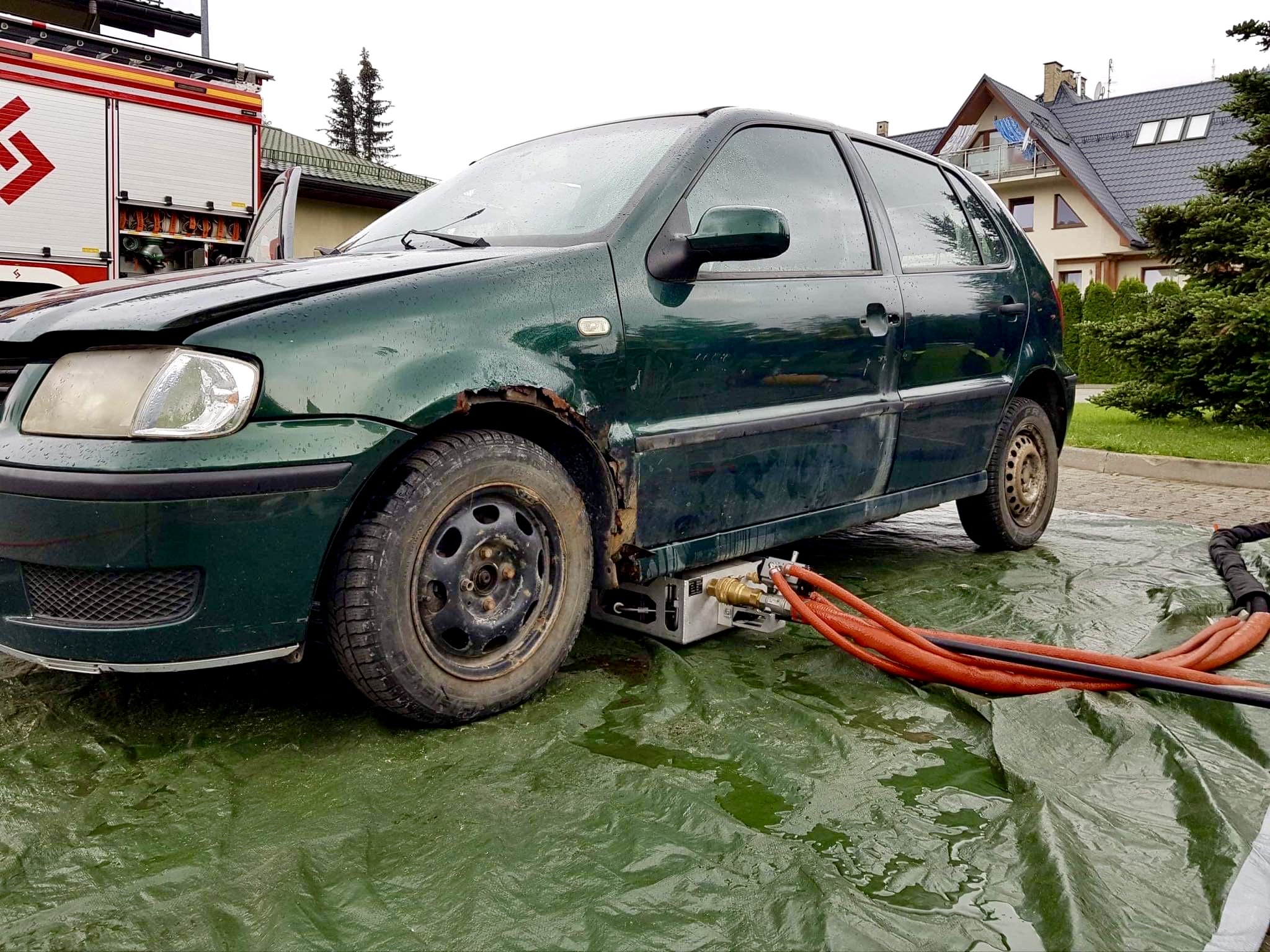 Pokaz sprzętu do gaszenia pojazdów elektrycznych.
