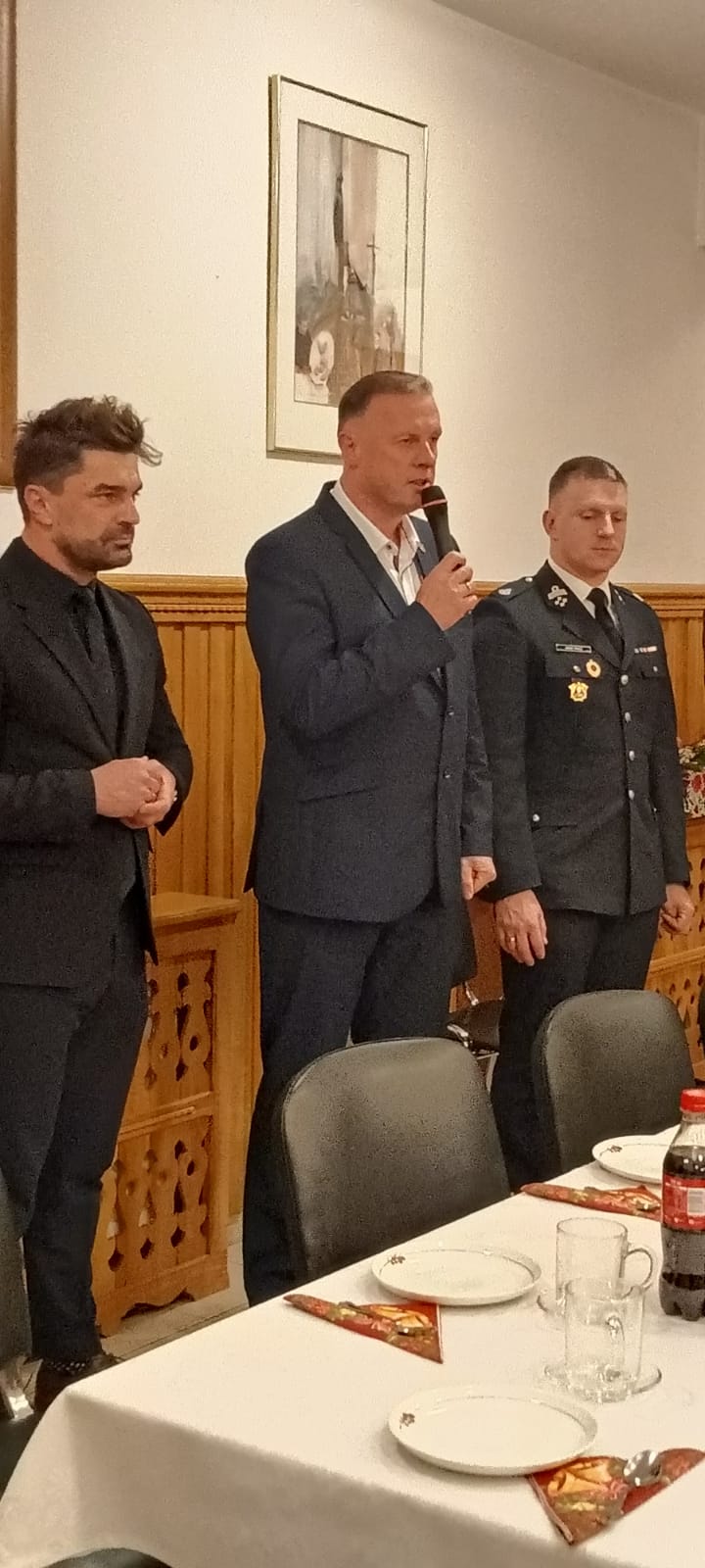 Uczestnikom spotkania Słowo Boże przybliżył powiatowy kapelan strażaków ks. Marian Mucha. Zaraz po życzeniach strażacy oraz zaproszeni goście przełamali się opłatkiem życząc sobie nawzajem zdrowia, radości oraz ciepłej i rodzinnej atmosfery.