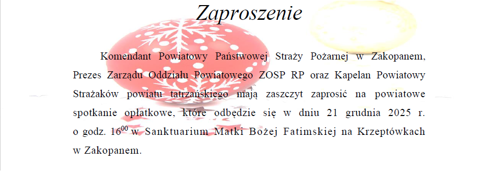 | Powiatowy Opłatek Strażacki 2025 | 1.0 | 15.12.2025 11:00 st. sekc. Adam Bendkowski |