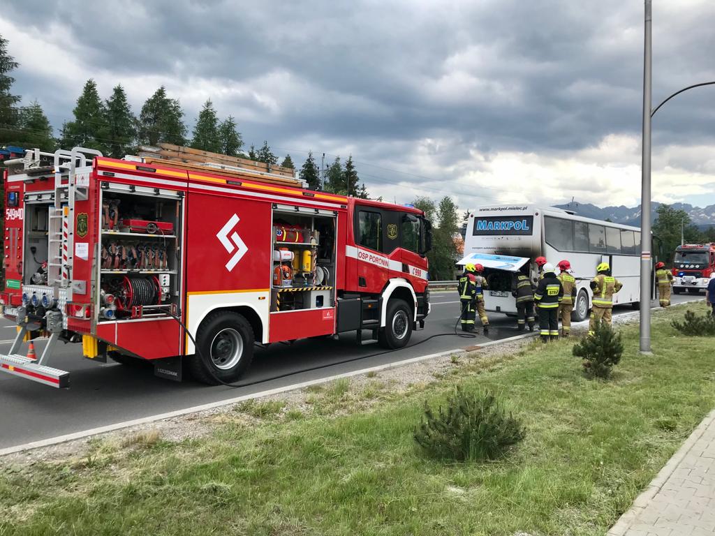 W dniu 13.06 o godz. 12:18 Dyżurny Operacyjny Stanowiska Kierowania Komendanta Powiatowego w Zakopanem odebrał zgłoszenie o Pozerze autobusu na DK47 w Poroninie. Po przybyciu na miejsce zdarzenia i przeprowadzeniu rozpoznania KDR ustalił: na DK 47 doszło do pożaru komory silnika w autobusie przewożącym pasażerów, który zastępuje połączenie PKP, pojazd zatrzymał się na pasie włączającym do ruchu. Pożar ugaszony przed przybyciem JOP, osoby podróżujące opuściły pojazd o własnych siłach i nie wymagały udzielania KPP. Działania JOP polegały na zabezpieczeniu miejsca zdarzenia oraz rozwinięto linię szybkiego natarcia. Jezdnia w kierunku Zakopanego zablokowana. W autobusie podróżowało 35- pasażerów, kierowca oraz przedstawiciel PKP Intercity. Odłączono akumulatory, sprawdzono wnętrze autobusu urządzeniami pomiarowymi - nie stwierdzono zagrożenia oraz w prowadzono ruch wahadłowy. PKP udostępnił zastępczy pojazd w celu zabrania osób podróżujących z miejsca zdarzenia. Wszystkie osoby przebywały w bezpiecznym miejscu na pasie zieleni. Następnie uprzątnięto jezdnie ze spalonych elementów karoserii. PKP Intercity podstawił autobus zastępczy w celu przewiezienia pasażerów do miejsca docelowego. Po zakończeniu działań patrol Policji pozostał na miejscu.