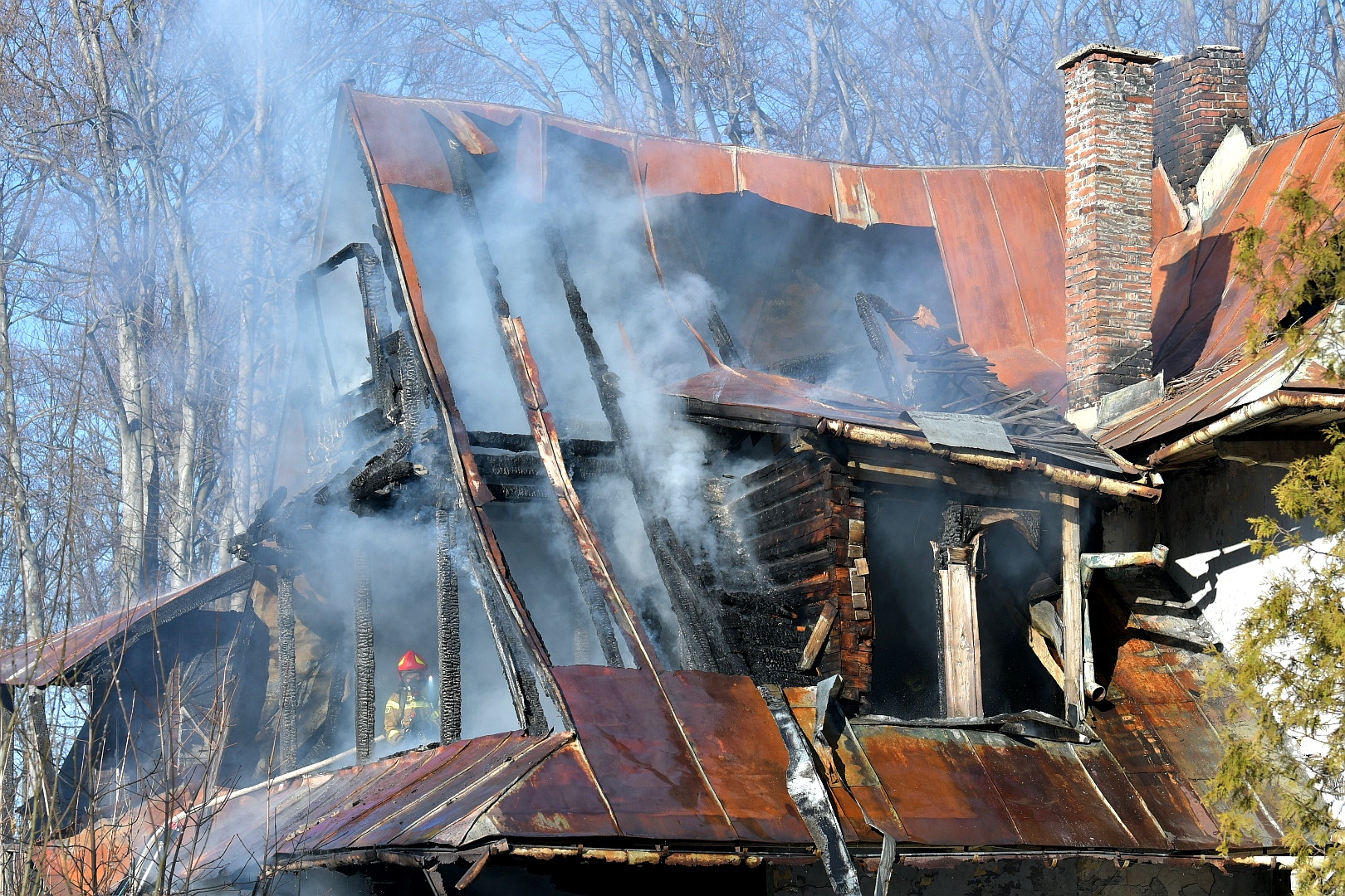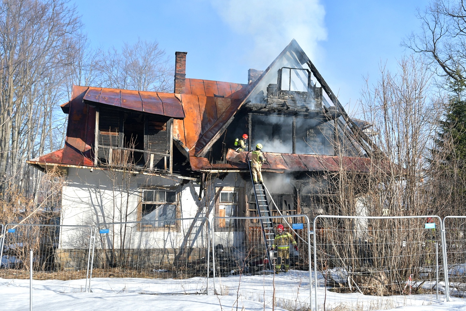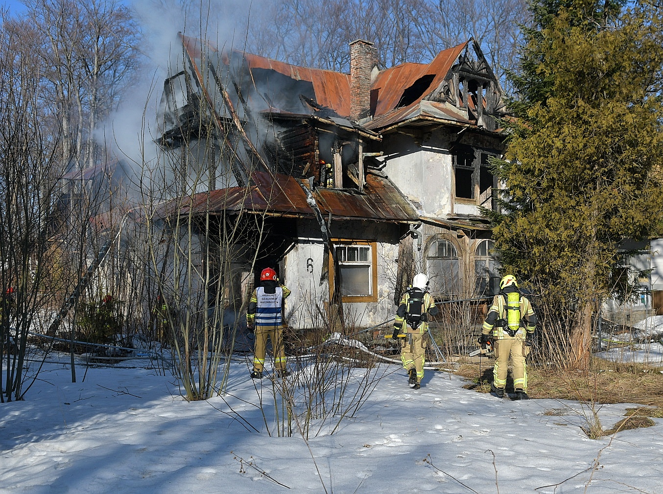 W dniu 25 marca 2022 w Zakopanem na ul. Jagiellońskiej miał miejsce pożar budynku mieszkalnego - pustostanu. Obiekt o konstrukcji murowano - drewnianej. Naruszony konstrukcyjnie na skutek pożarów, które miały miejsce w obiekcie w poprzednich latach. W chwili przyjazdu zastępów z JRG Zakopane i dokonanym rozpoznaniu ustalono, że pożarem objęte są dwa pomieszczenia w części południowej, w obiekcie panuje duże zadymienie. Pożar rozprzestrzenia się na pozostałą część budynku. Działania I KDR: zabezpieczenie terenu prowadzonych działań ratowniczo - gaśniczych, wykonanie dostępu do budynku (teren ogrodzony metalowym płotem nieprzytwierdzonym na stałe do gruntu) poprzez wywrócenie trzech przęseł płotu. Wyznaczył strażaków zabezpieczonych w AODO, wyposażonych w linię gaśniczą, sprzęt burzący kamerę termowizyjną aby weszli do obiektu w celu ugaszenia pożaru i sprawdzenia go pod kątem ewentualnych osób poszkodowanych. Jednocześnie podano drugi prąd gaśniczy wody w natarciu na palące się pomieszczenie na parterze z zewnątrz. Zasilanie w wodę do miejsce pożaru realizowano z sieci hydrantowej miejskiej. I KDR zadysponował na miejsce zdarzenia dodatkowe SiS. Po przyjeździe na miejsce zdarzenia Zastępcy Dowódcy JRG i zapoznaniu się z sytuacją przejął dowodzenie. II KDR polecił sprawić trzecią linię gaśniczą w natarciu na palące się pomieszczenia, wprowadził drugą rotę z kamerą termowizyjną z OSP Olcza. Po ugaszeniu pożaru i oddymieniu budynku przeszukano cały obiekt, nie odnaleziono osób, które mogły przebywać w budynku w chwili powstania pożaru. II KDR polecił ugasić pojedyncze zarzewia ognia, dokonać niezbędnych prac rozbiórkowych drewnianych elementów konstrukcyjnych w celu likwidacji całkowitego pożaru.
