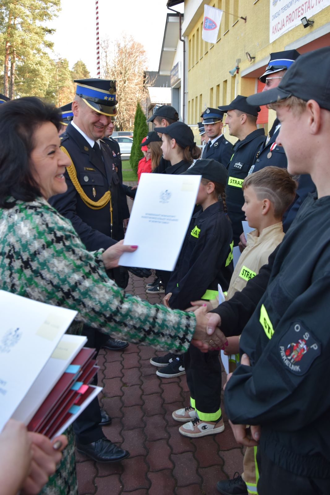 Promesy odebrali przedstawiciele jednostek ochotniczych straży pożarnych wraz z członkami Młodzieżowych Drużyn Pożarniczych.