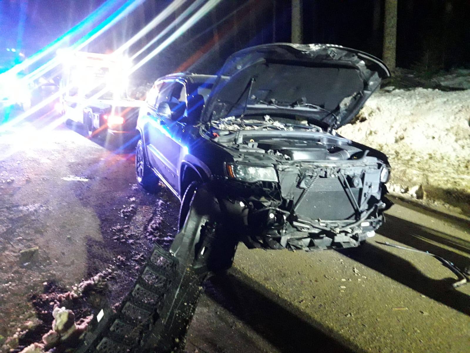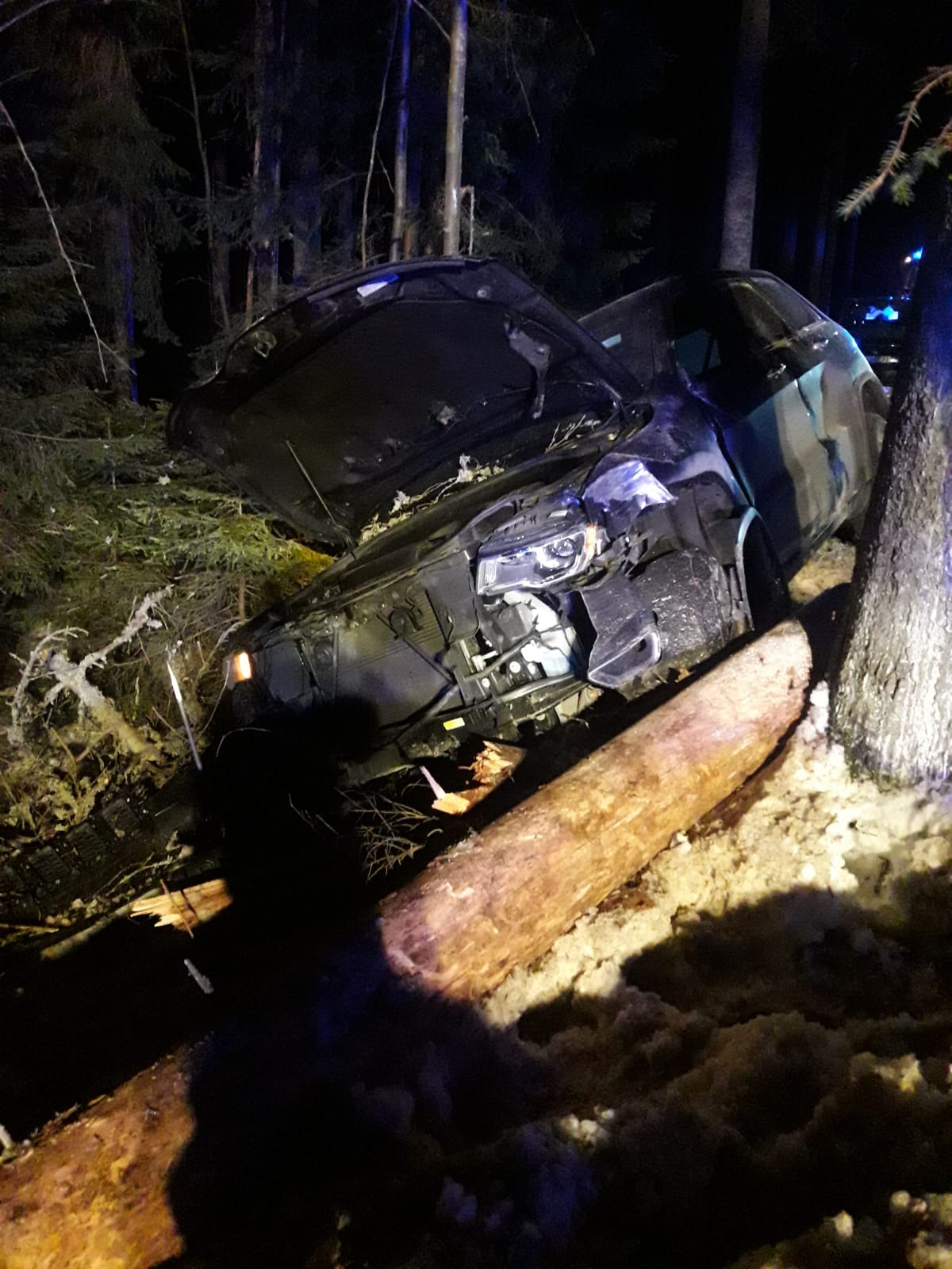 W dniu 23 lutego wieczorem do Stanowiska Kierowania Komendanta Powiatowego PSP w Zakopanem wpłynęło zgłoszenie – samochód osobowy wypadł z drogi i uderzył w drzewo. Przybyły na miejsce zdarzenia pierwszy zastęp z OSP Kościelisko stwierdził, że kierująca pojazdem Jeep na jezdni przebiegającej przez las, nie zapanowała nad samochodem i uderzyła w drzewo (ścięła go), które przewróciło się na jej i następny samochód jadący, w tym samym kierunku. Osoby podróżujące samochodami opuściły pojazdy przed przybyciem JOP. Jezdnia zablokowana w obydwu kierunkach, przez powalone drzewo. Działania JOP polegały na zabezpieczeniu miejsca zdarzenia poprzez odpowiednie ustawienie samochodów z włączoną sygnalizacją świetlną, rozstawieniu znaków, stożków i świateł ostrzegawczych. Ratownicy sprawdzili stan osób uczestniczących w zdarzeniu - udzielono wsparcia psychicznego kierującej pojazdem Jeep. Następnie usunięto powalone drzewo z jezdni, zabezpieczono samochody przed przemieszczeniem. Po przeprowadzeniu czynności przez patrol Policji przybyła na miejsce zdarzenia pomoc drogowa podjęła próbę wyciągnięcia Jeepa, z przyczyn technicznych (za słaba wyciągarka) nie była w stanie wydobyć samochodu z rowu, zadysponowano zatem cięższy sprzęt. Na czas oczekiwania w prowadzono ruch wahadłowy. Po przyjeździe zadysponowanej pomocy drogowej, na czas wydobycia i załadunku samochodu wstrzymano całkowicie ruch drogowy. Drogę uprzątnięto z połamanych elementów karoserii oraz pozostałości pociętego drzewa.