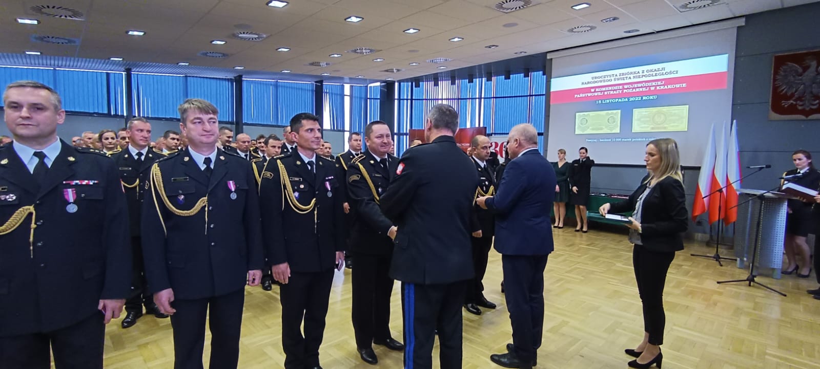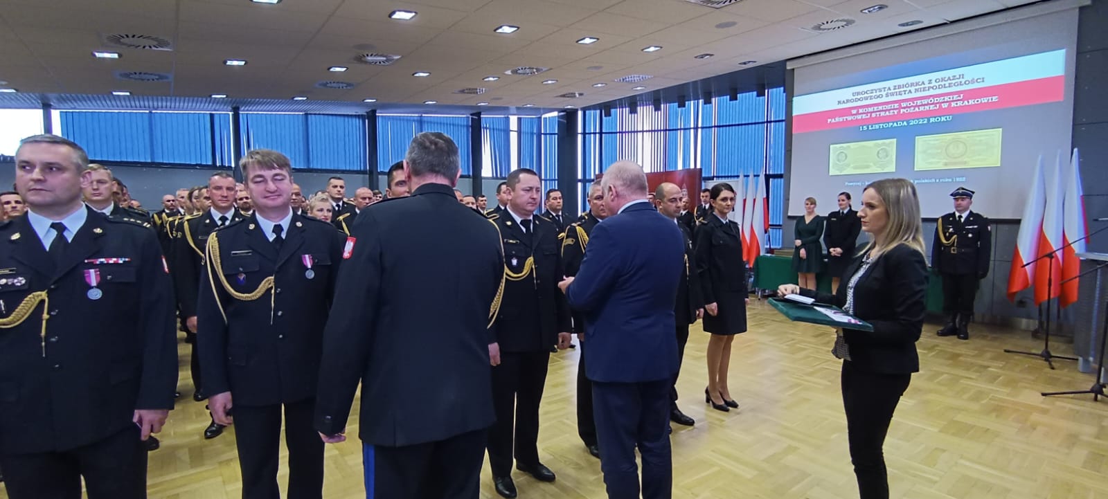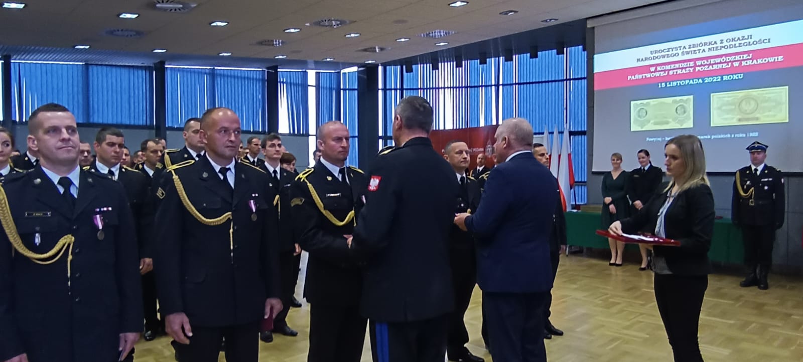 Z okazji Narodowego Święta Niepodległości, jako wyraz uznania za służbę i pracę, funkcjonariuszom i pracownikom cywilnym jednostek organizacyjnych PSP woj. małopolskiego przyznane zostały odznaczenia, wyróżnienia i awanse, w tym.