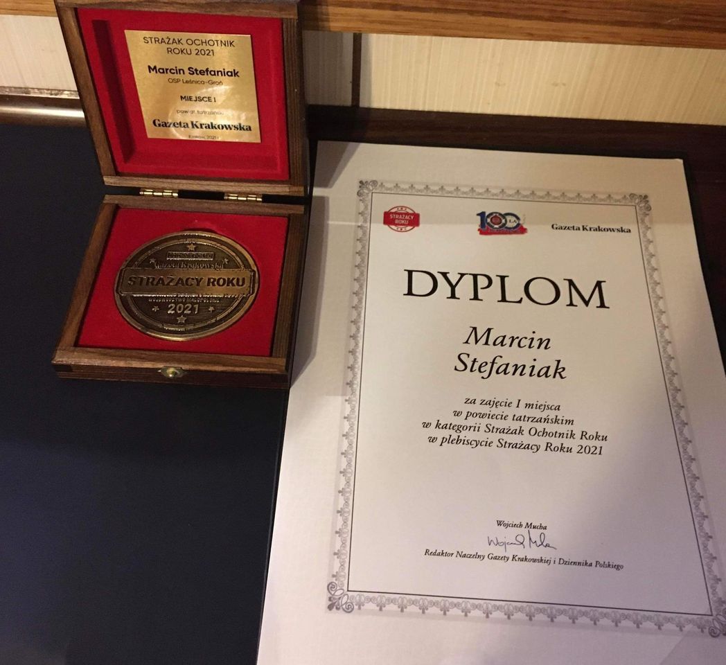 Marcin Stefaniak, strażak OSP Leśnica Groń zwyciężył w plebiscycie Gazety Krakowskiej „Strażak Roku 2021” na terenie powiatu tatrzańskiego.