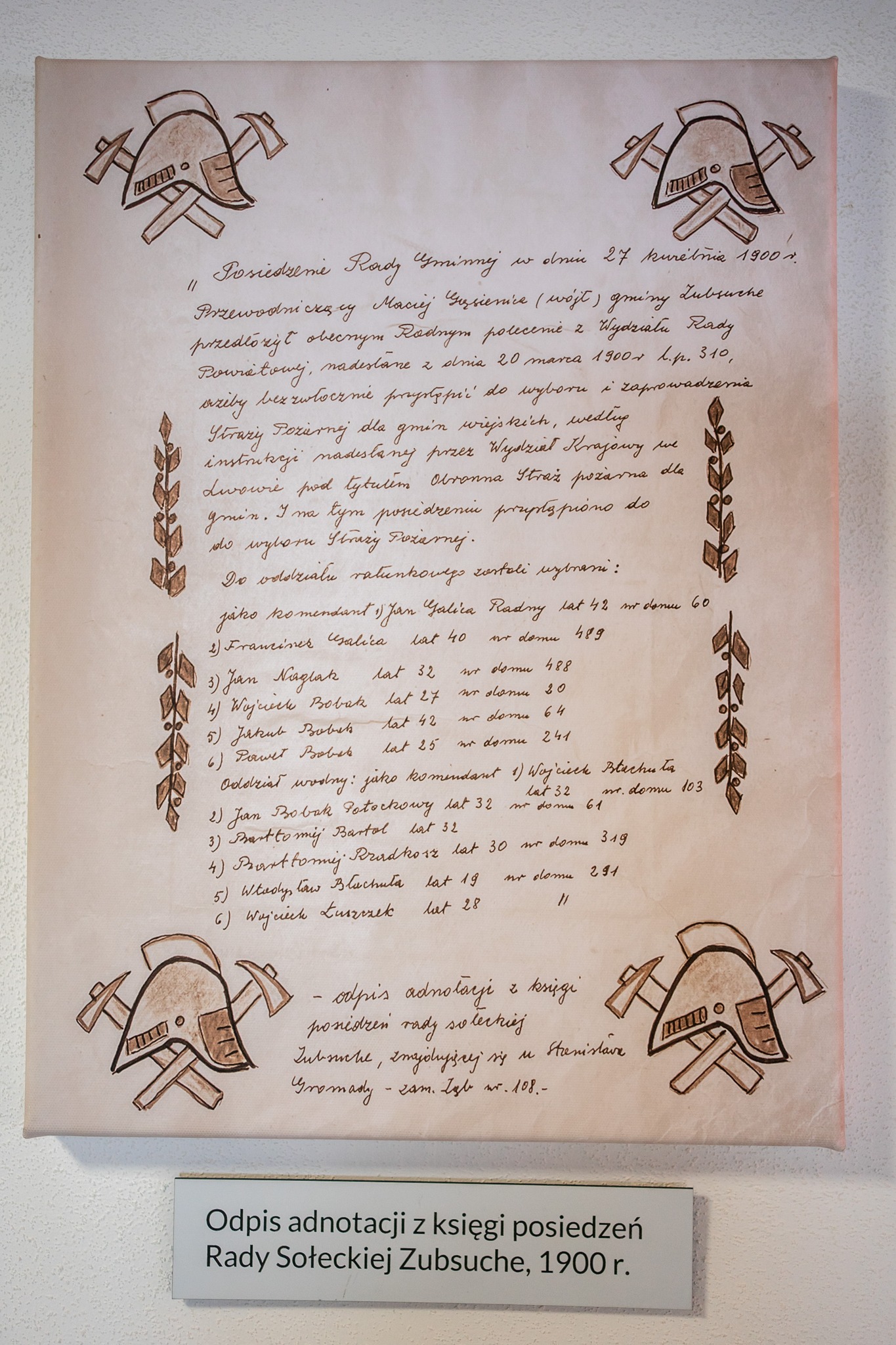 Wystawa prezentująca rolę OSP w remizie OSP w Zębie