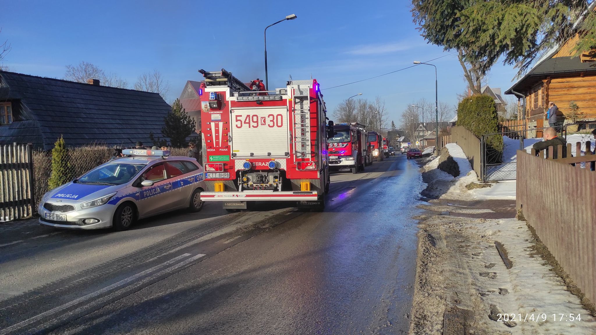 | Zakopane - pożar budynku drewnianego na ulicy Kościeliskiej | 1.0 | 12.04.2021 11:47 mł. bryg. Krzysztof Leja |