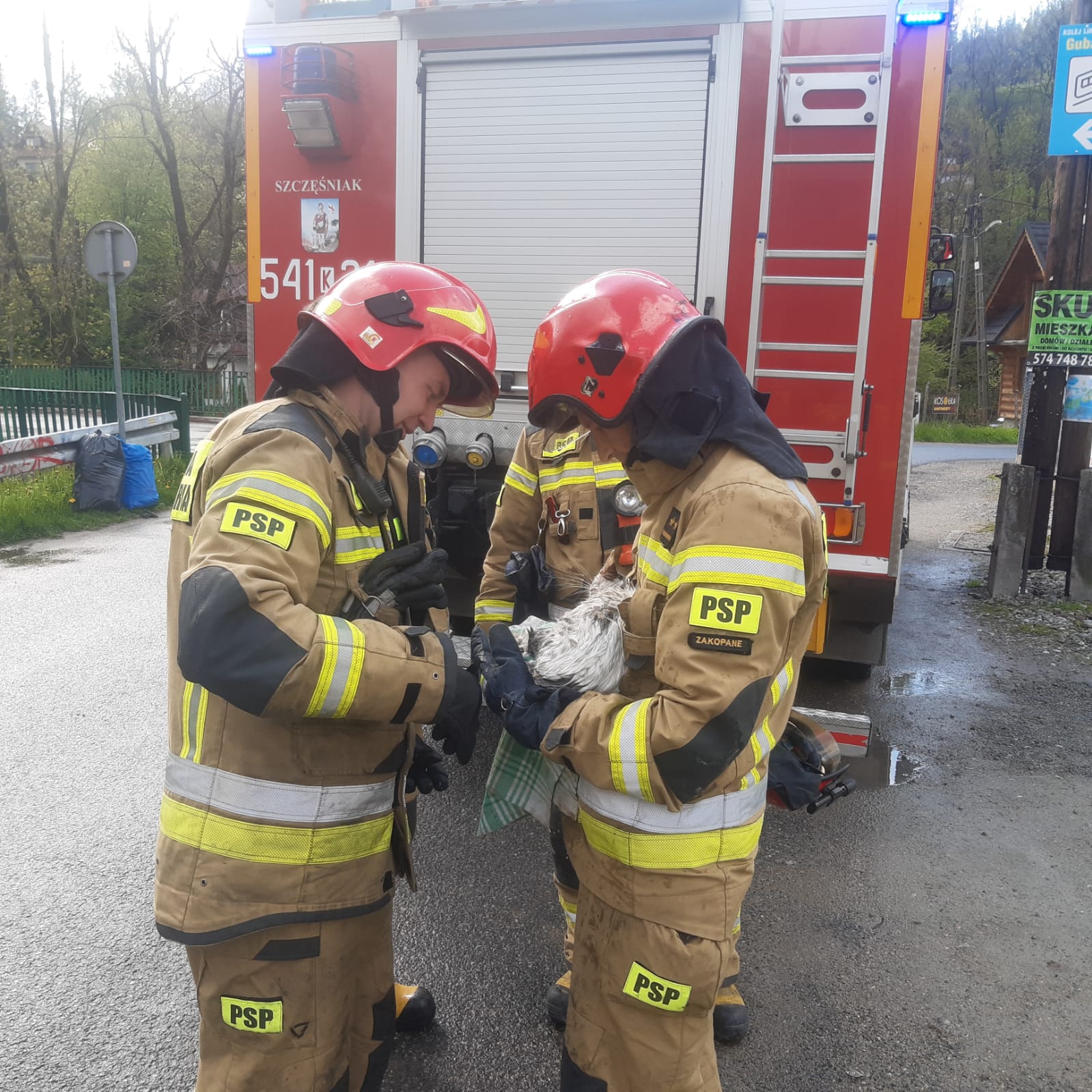 31 maja 2021r w Zakopanem na ul Nowotarskiej w korycie potoku na półce skalnej znajdował się kot, który wpadł do wody. Strażacy udali się wzdłuż koryta potoku w celu odnalezienia zwierzęcia. W trakcie prowadzonych działań ratownicy zlokalizowali kota w wodzie znajdującego się przy progu wodnym. Następnie ratownicy ewakuowali zwierzę na brzeg. Po wydobyciu kota został on osuszony i owinięty w ręcznik do czasu przyjazdu pracownika Tatrzańskiego Towarzystwa Opieki nad Zwierzętami, który to zabrał zwierzaka.