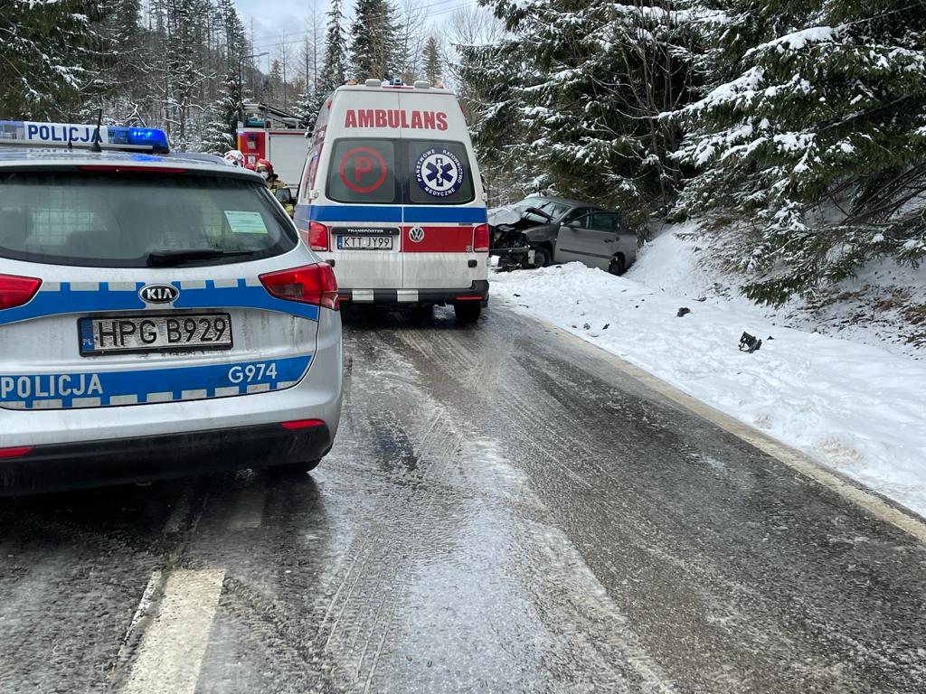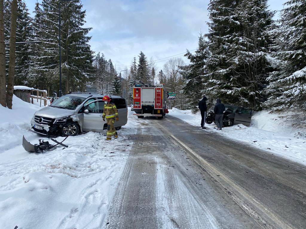 Zderzenie dwóch samochodów osobowych - Zakopane, Krzeptówki Potok